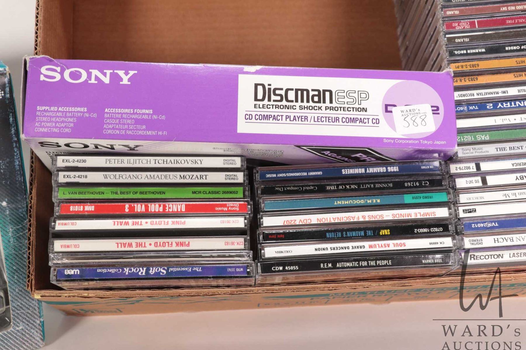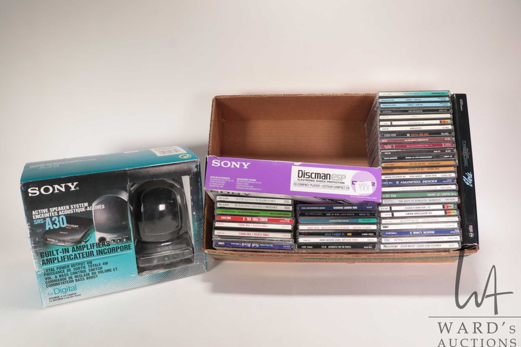 Lot 588 Vintage Sony Discman, Sony Active Speaker System and forty CDs including Rock, Classical etc.