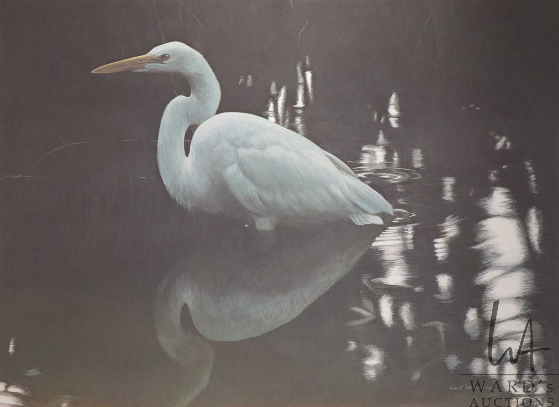 Lot 592 Robert Bateman, framed limited edition print titled "Mangrove Shadow-Egret", 1019/1250, pencil signe