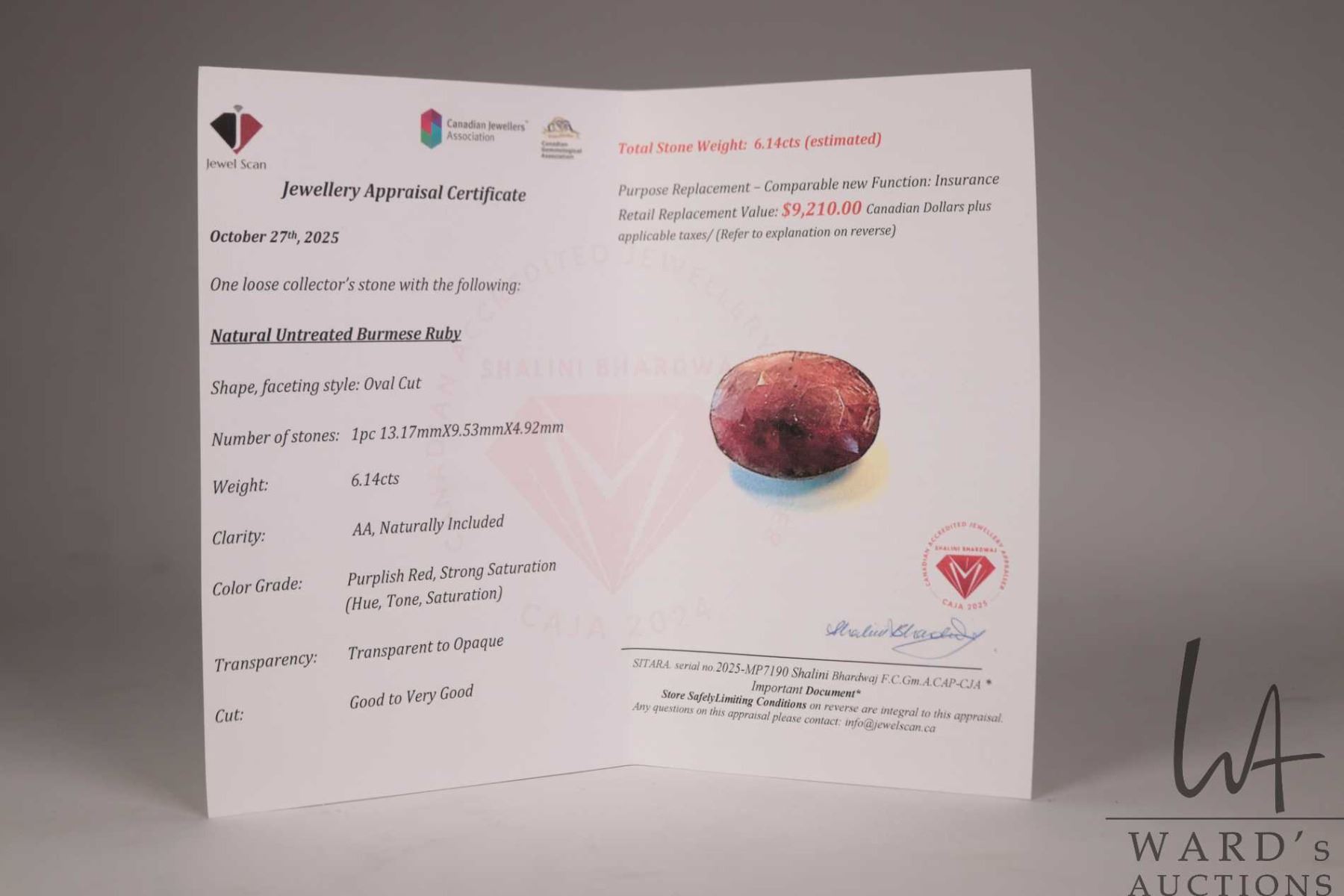 6.14ct Burmese ruby faceted oval cut gemstone with certificate provided by consignor