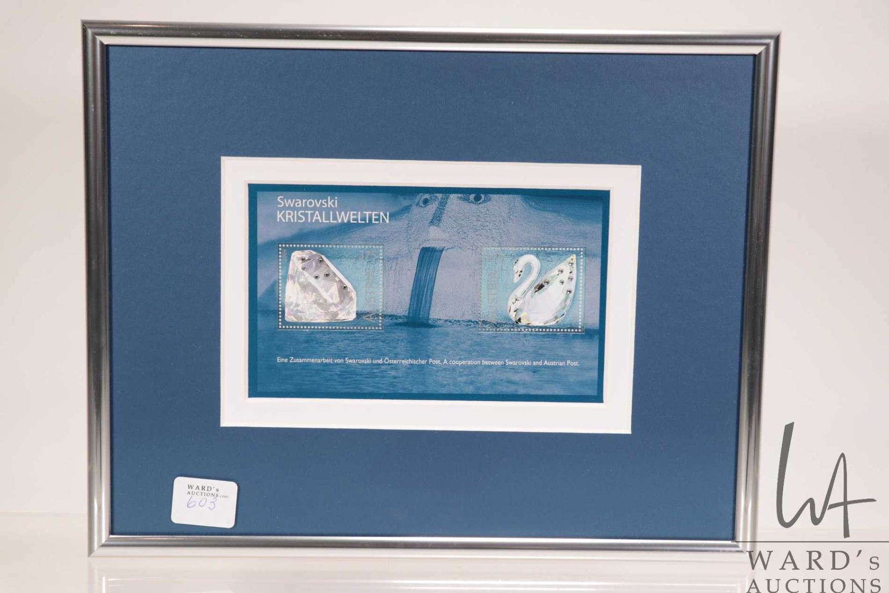 Lot 603 Framed collectible Swarovski and Austrian Post postage stamp, 8 1/4" X 10 1/2" overall dimensions in