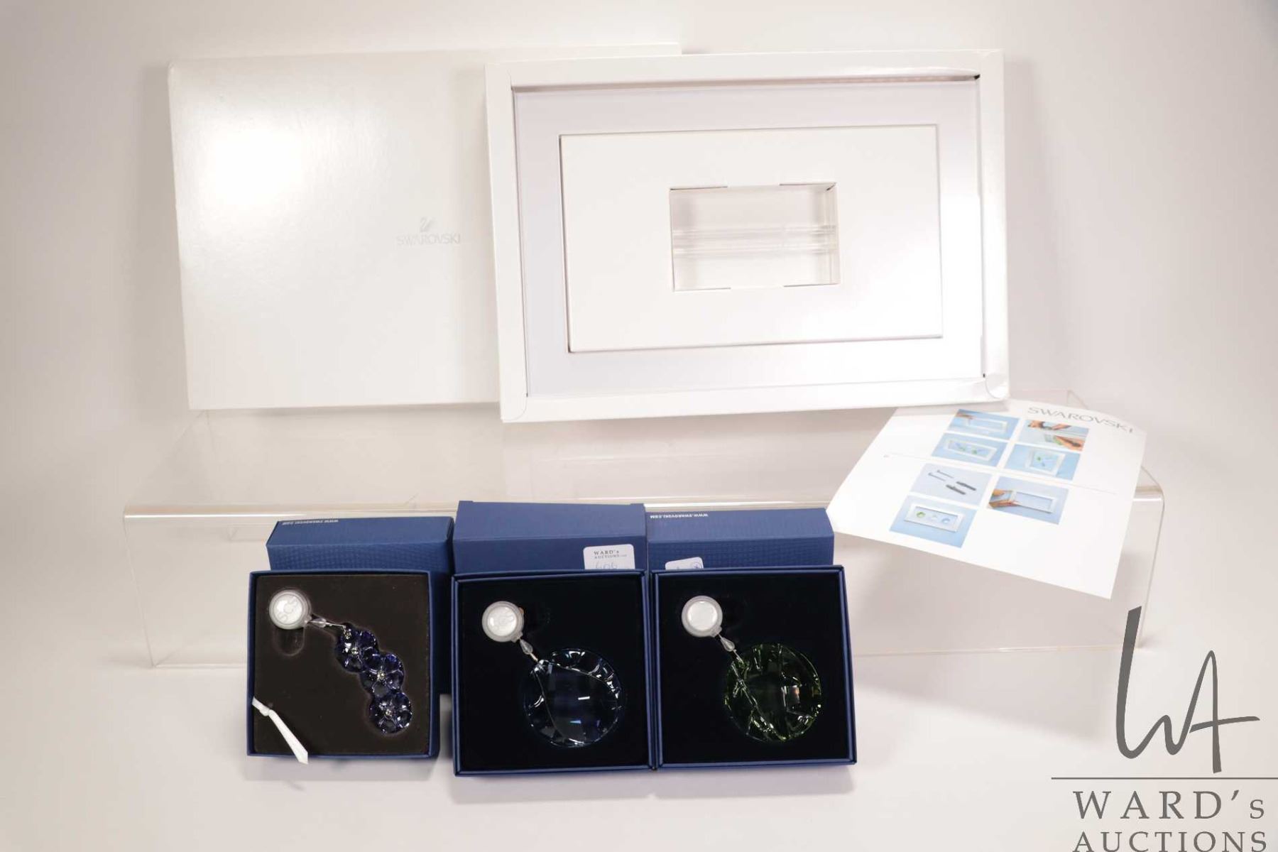 Lot 606 Three Swarovski crystal window ornaments and a window ornament hanging frame