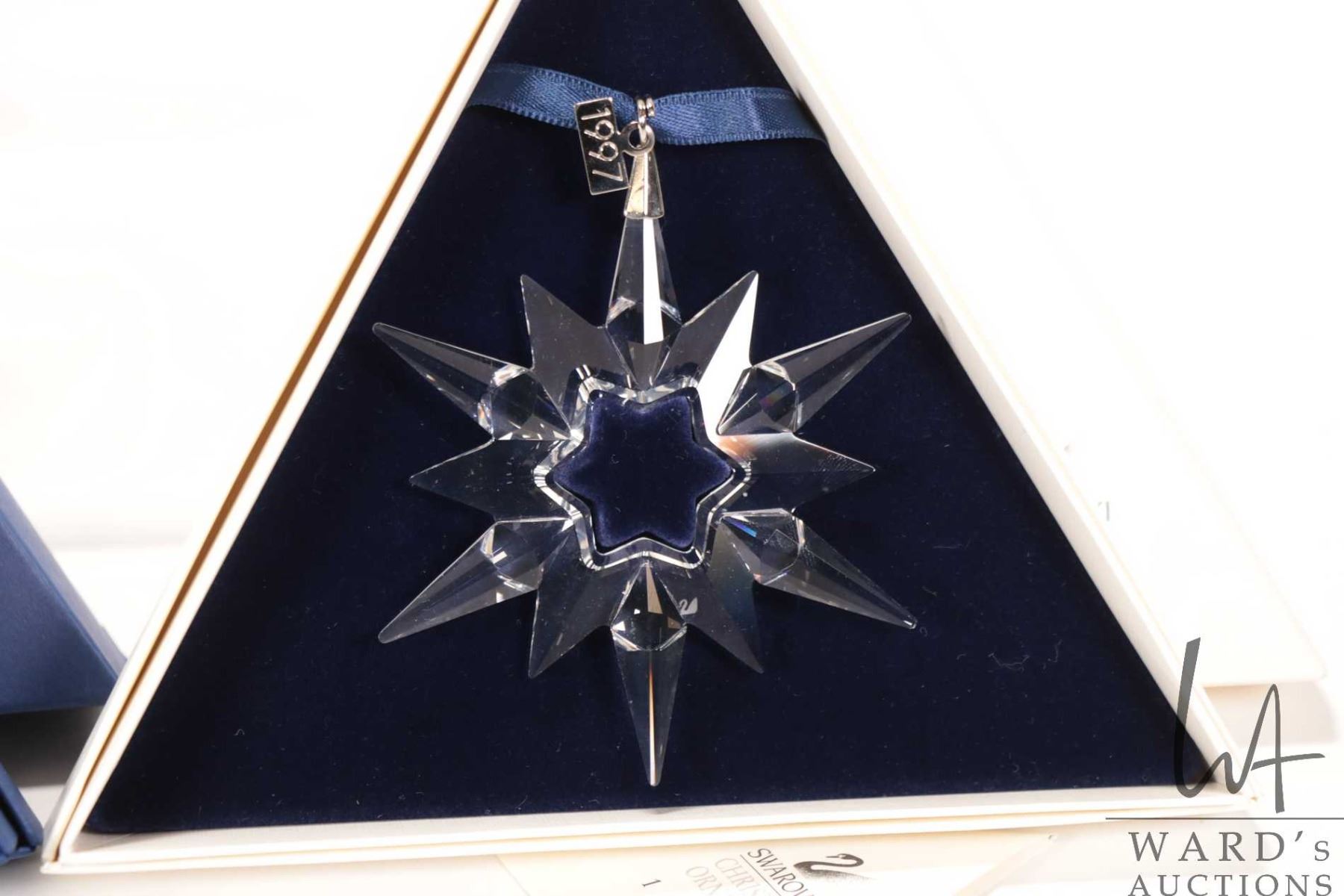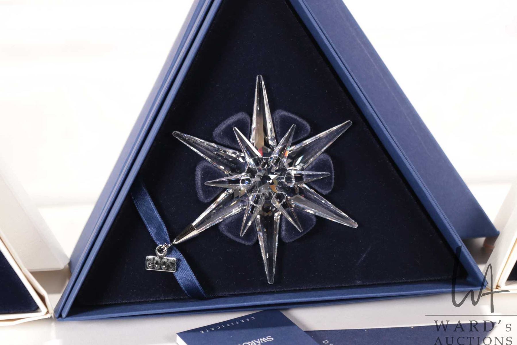 Lot 612 Four Swarovski crystal Christmas ornaments including 1197, 1999, 2005 and 2010