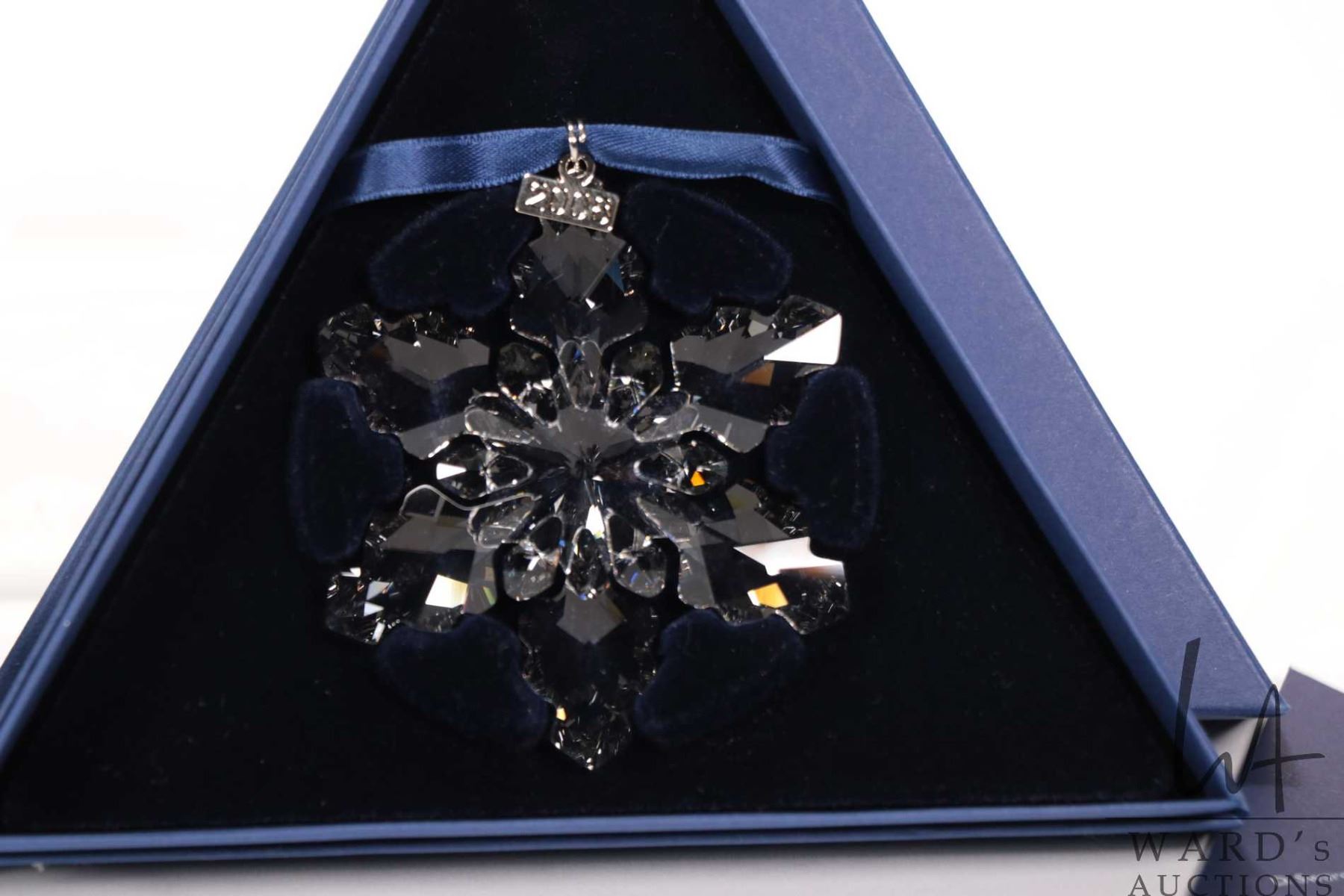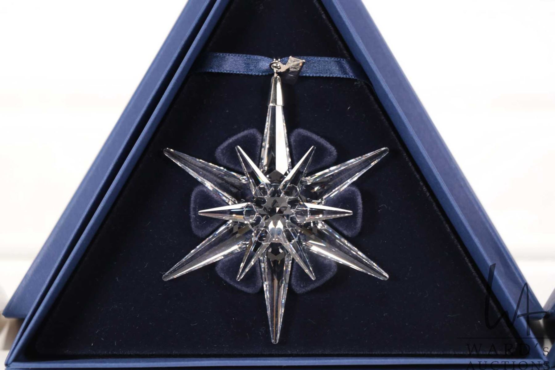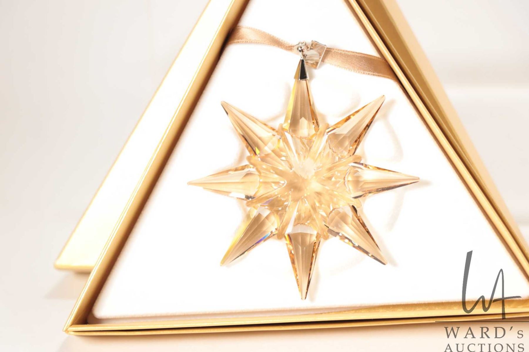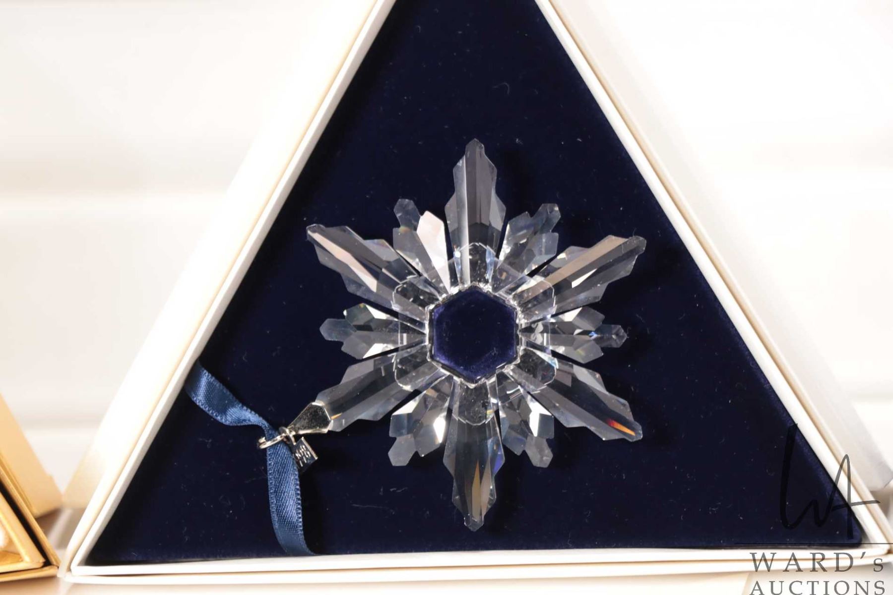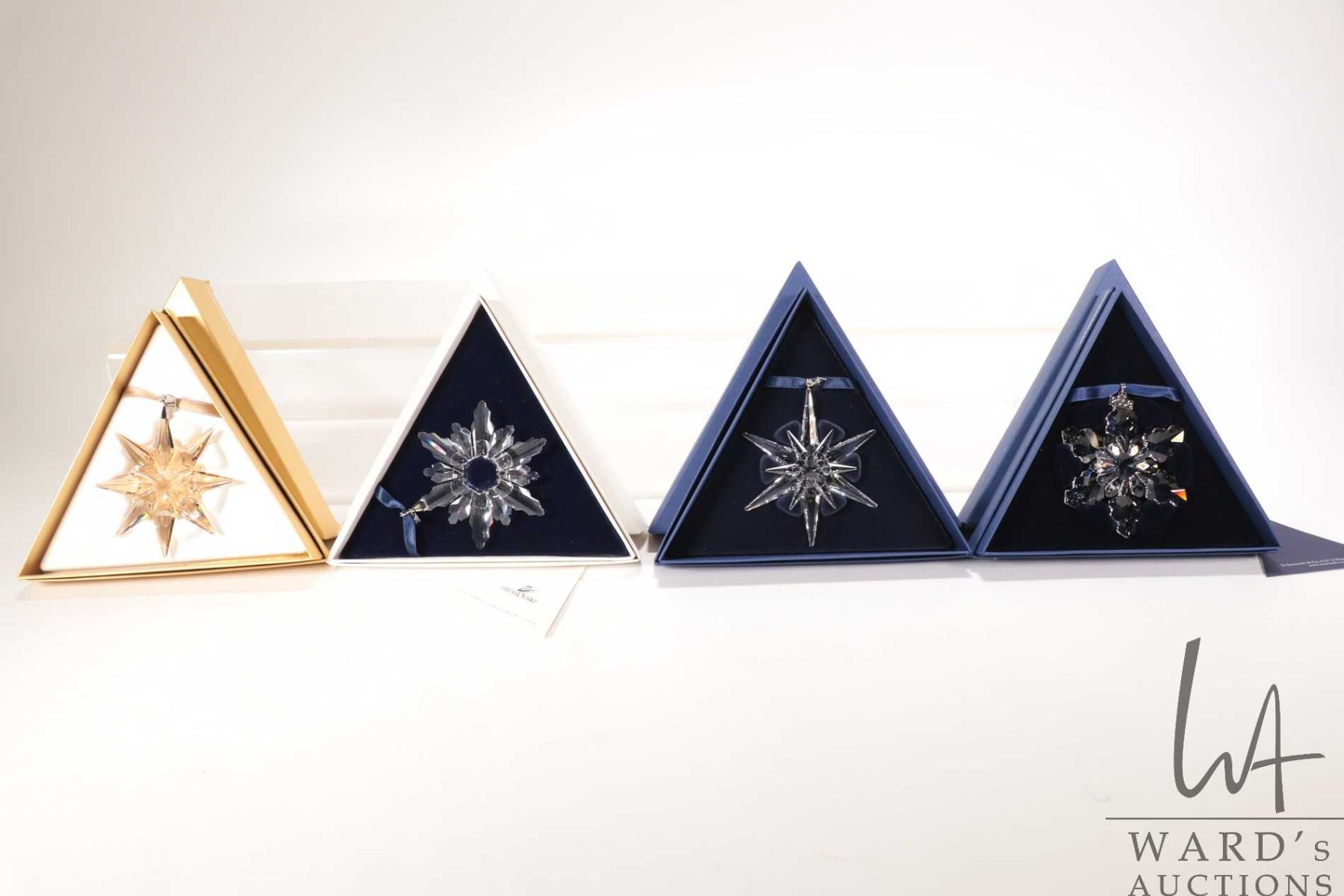 Lot 613 Four Swarovski crystal Christmas ornaments including 1998, 2005, 2008 and gold 2009