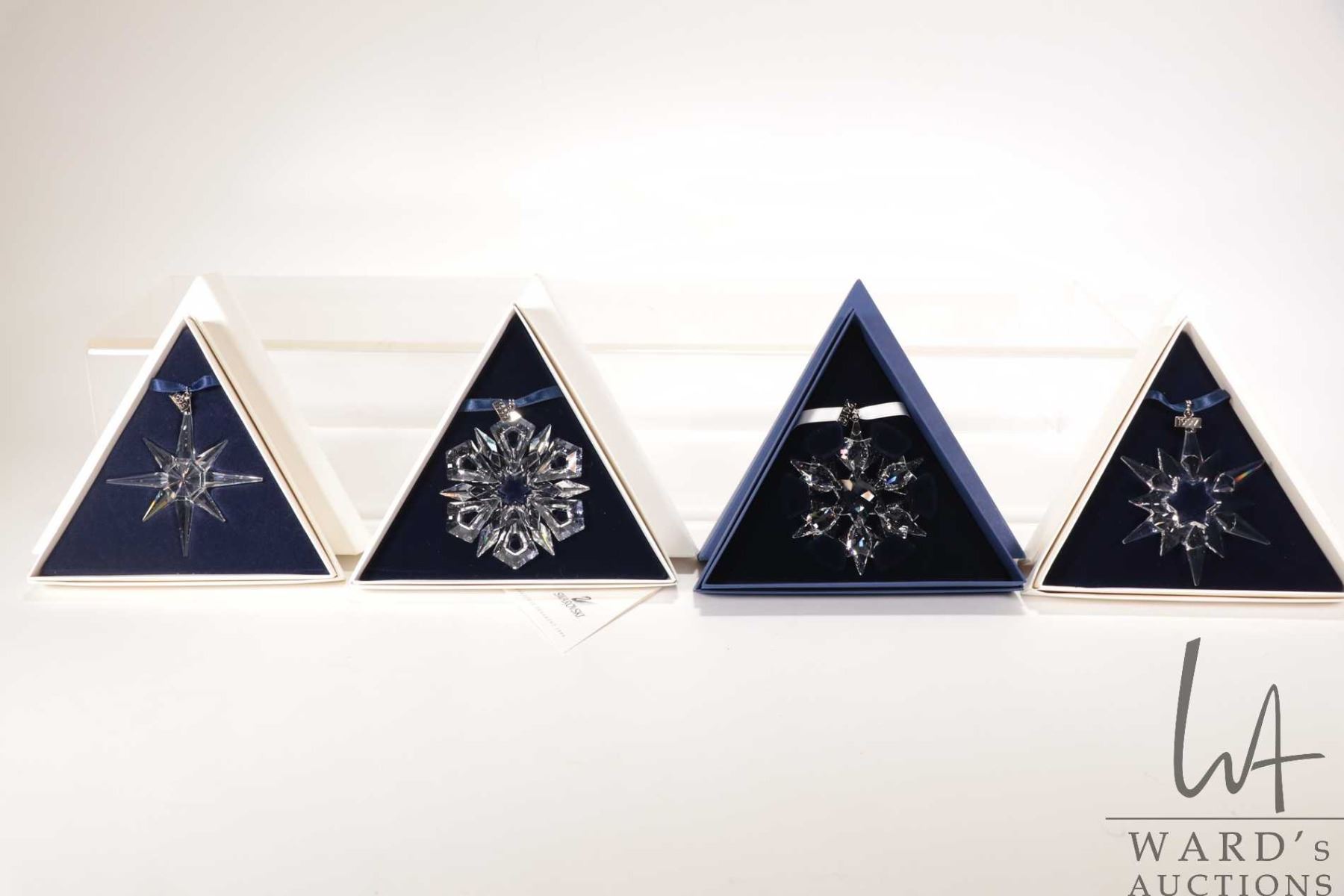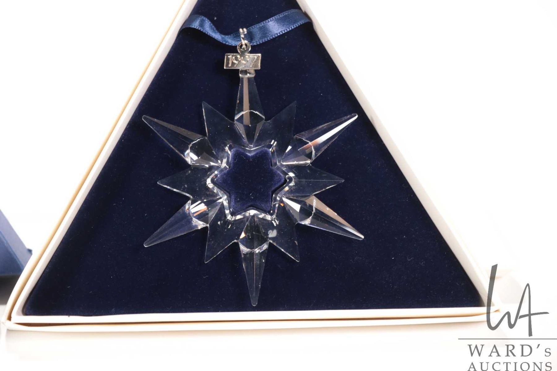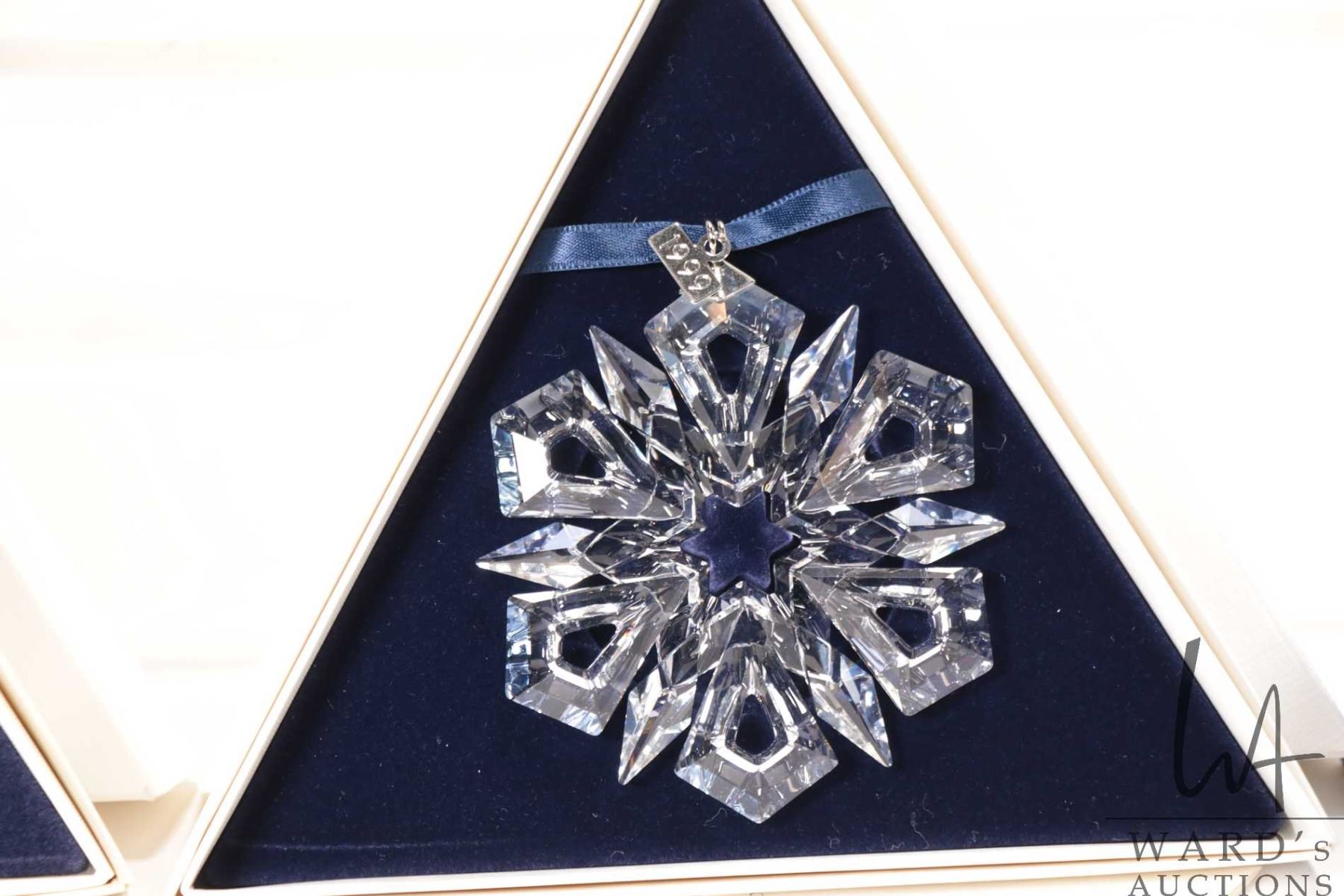 Lot 618 Four Swarovski crystal Christmas ornaments including 1995, 1997, 1999 and 2010