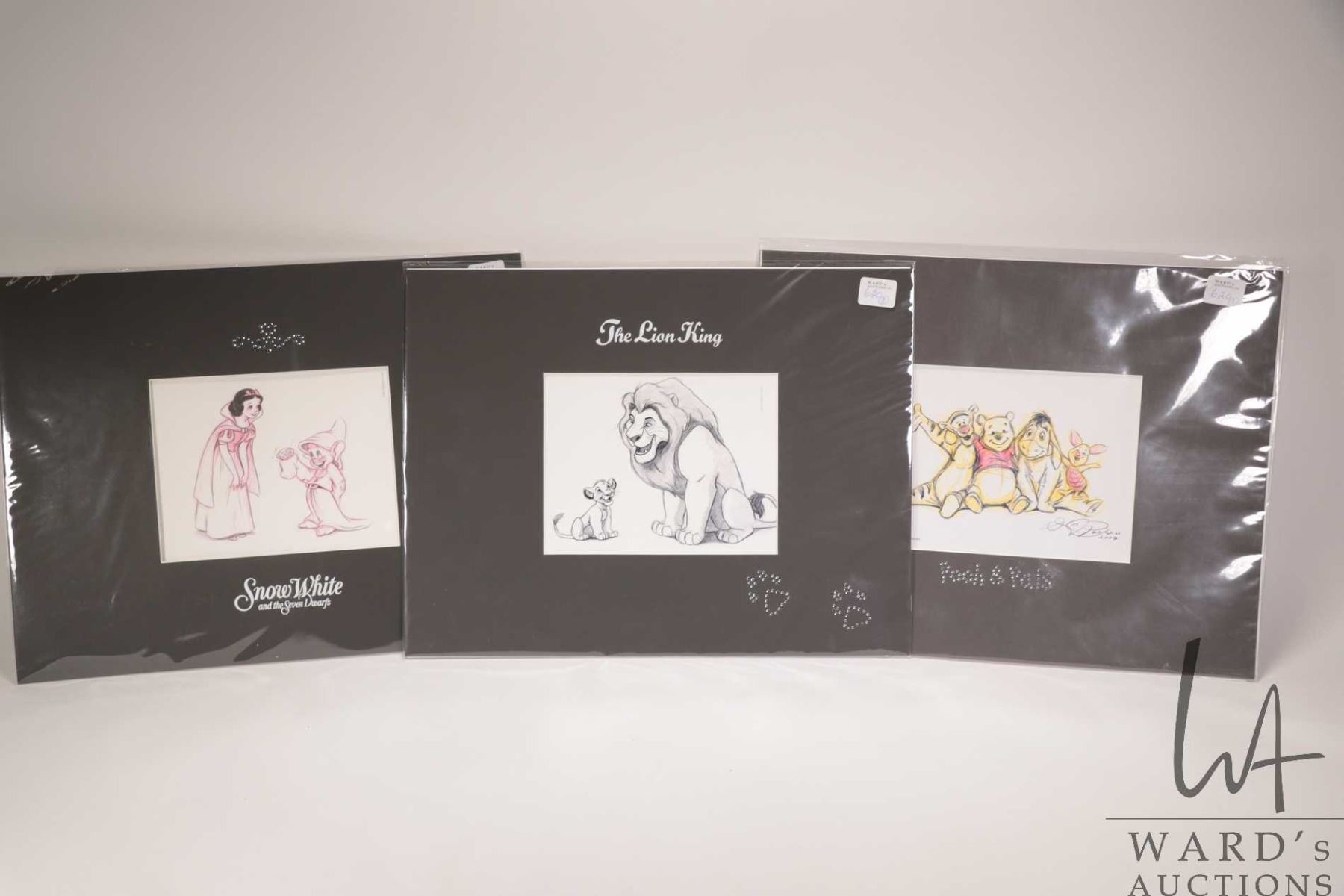 Swarovski Crystal and Disney limited edition lithographs including Snow White and the Seven Dwarfs, Winnie the Pooh and a Lion King, each matted and each measuring 10 1/2" X 14" outside dimensions