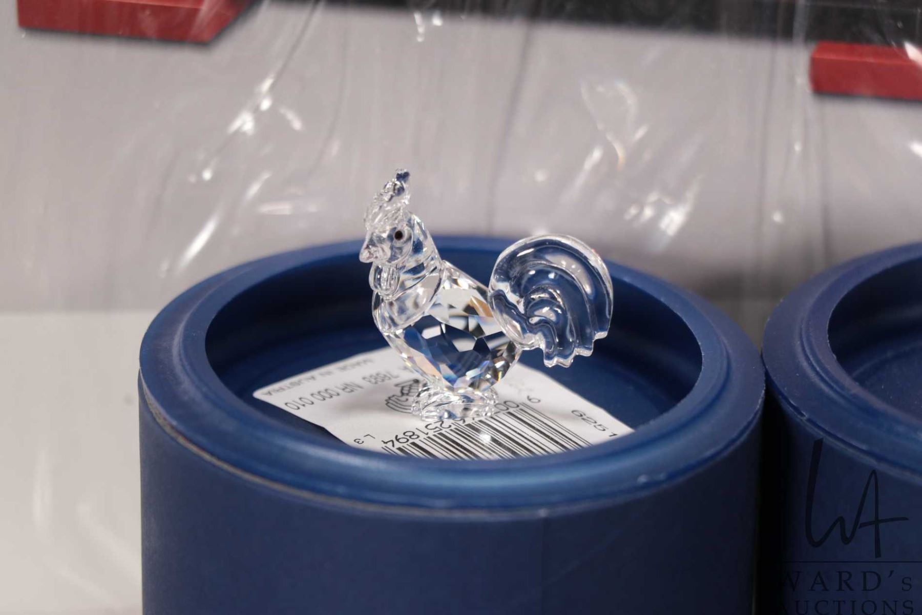 Swarovski crystal Zodiac with eleven zodiac animals and display stand plus a silver-plate Swarovski fortune cookie all with original boxes and packaging