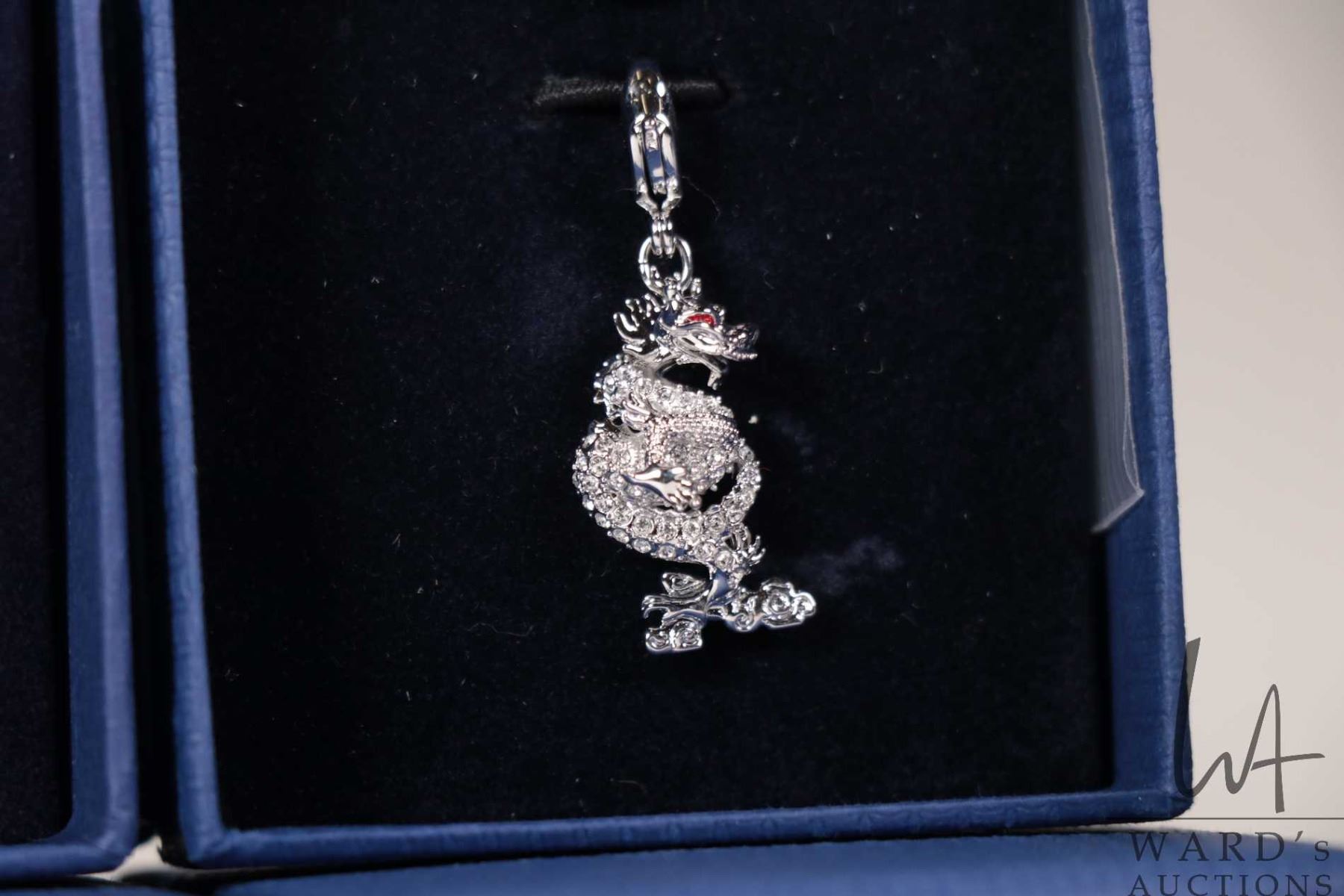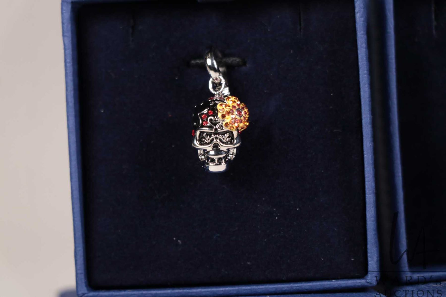 Lot 633 Three Swarovski hanging charms including two skulls and an Asian dragon plus a Chamilia .925 sterlin