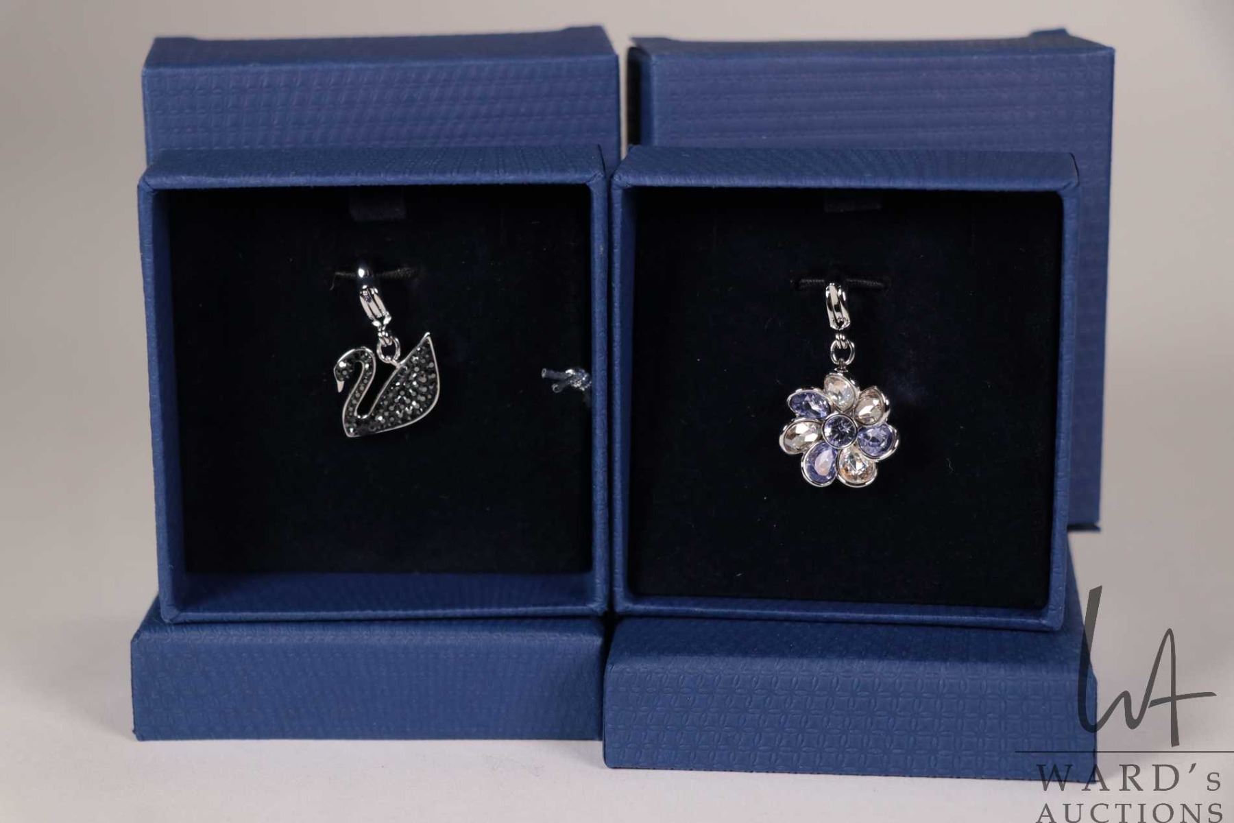 Lot 634 Two Swarovski hanging charms including Purple Renee Charm and Black Swan