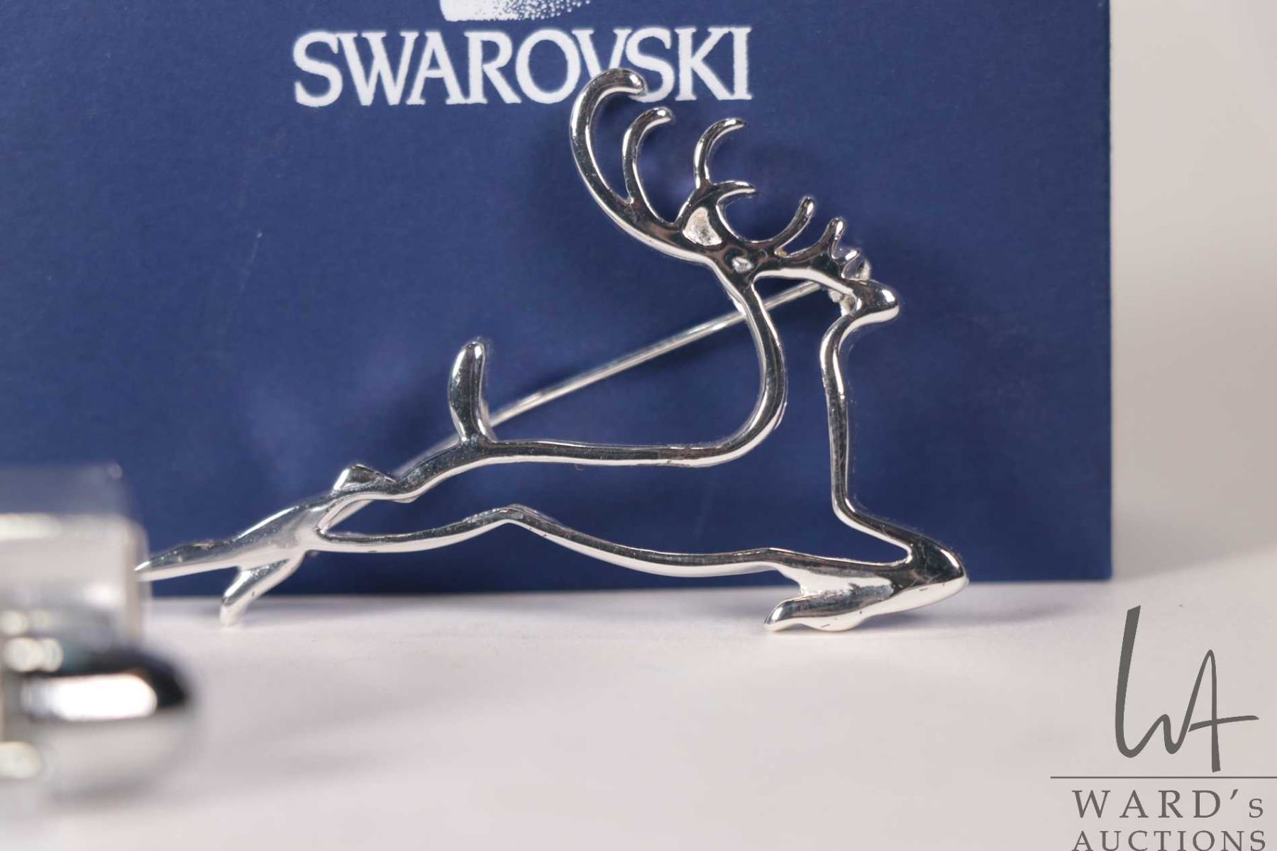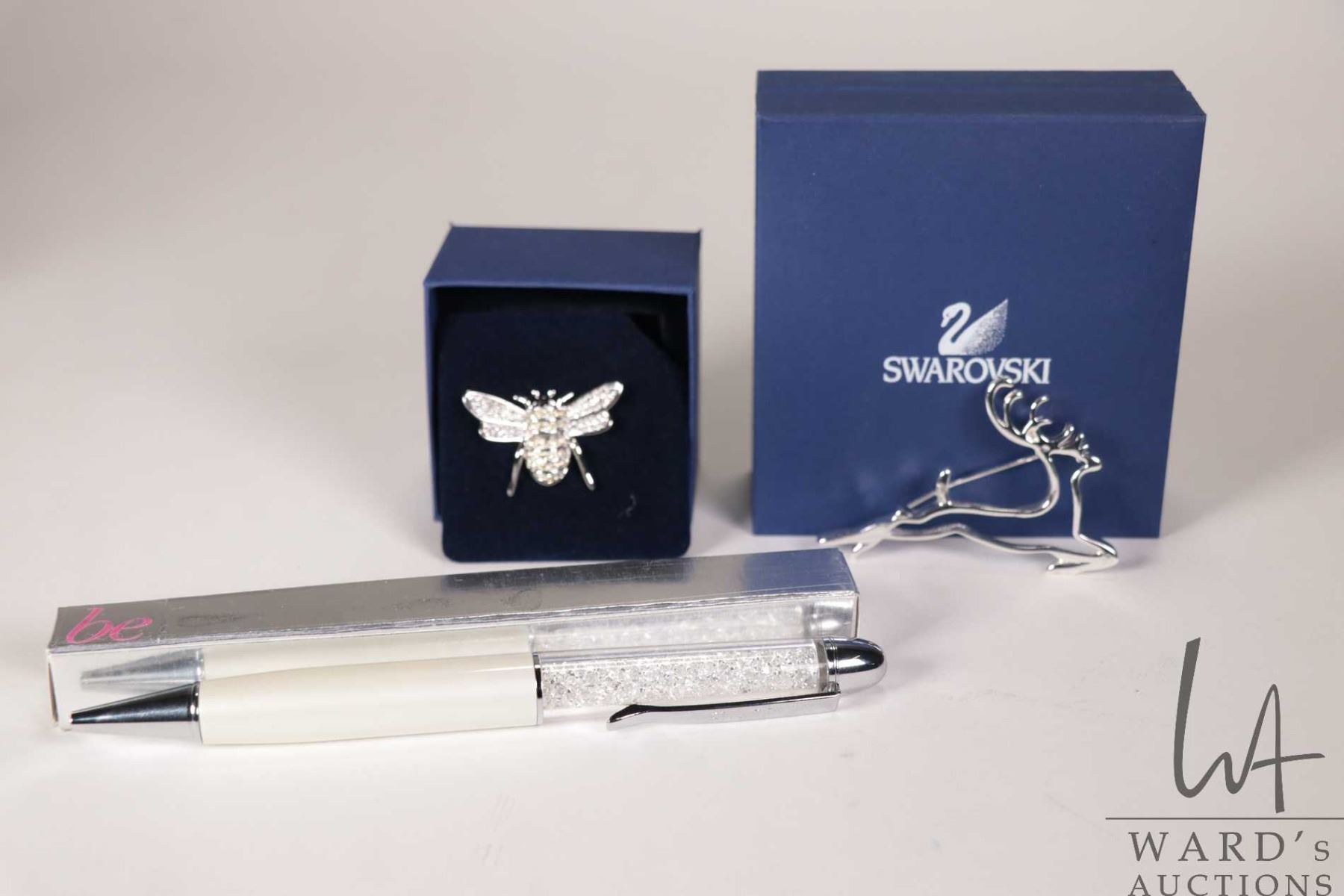 Lot 636 Swarovski crystal beaded bee and a stylized Swarovski deer brooch plus a Swarovski ball point pen