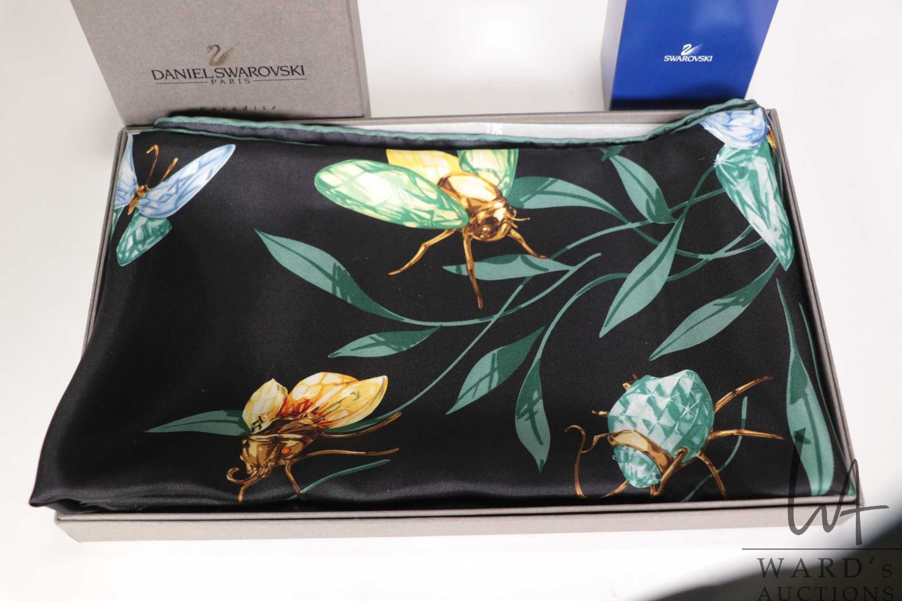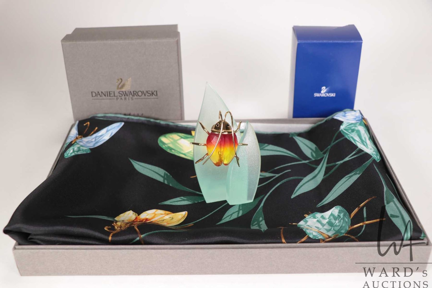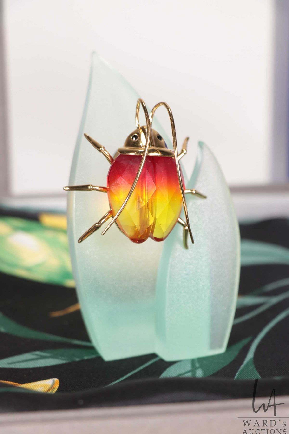 Lot 637 Swarovski silk insect and butterfly scarf and a Swarovski crystal magnetic beetle brooch and a magne