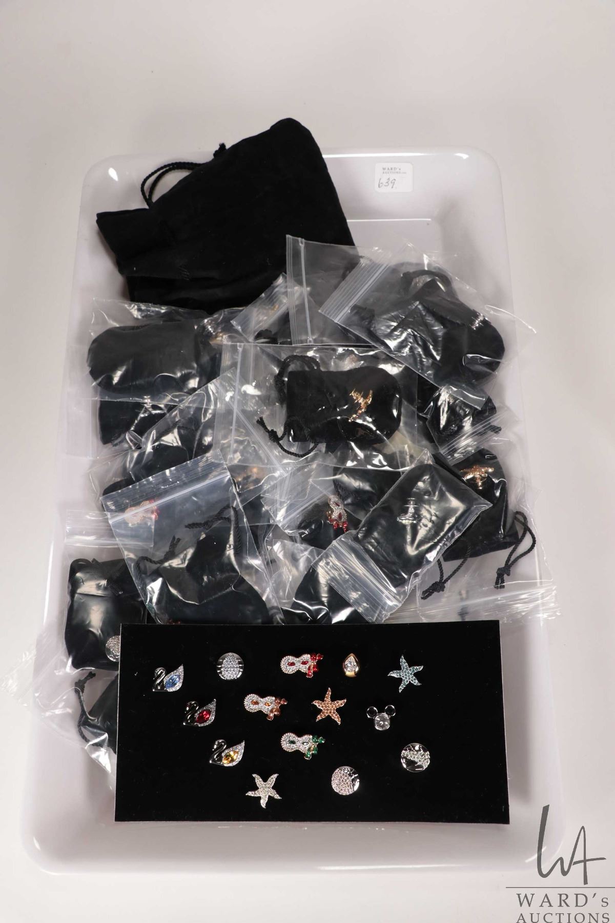 Lot 639 Tray lot containing 44 count of lapel pins each with individual black velvet bags