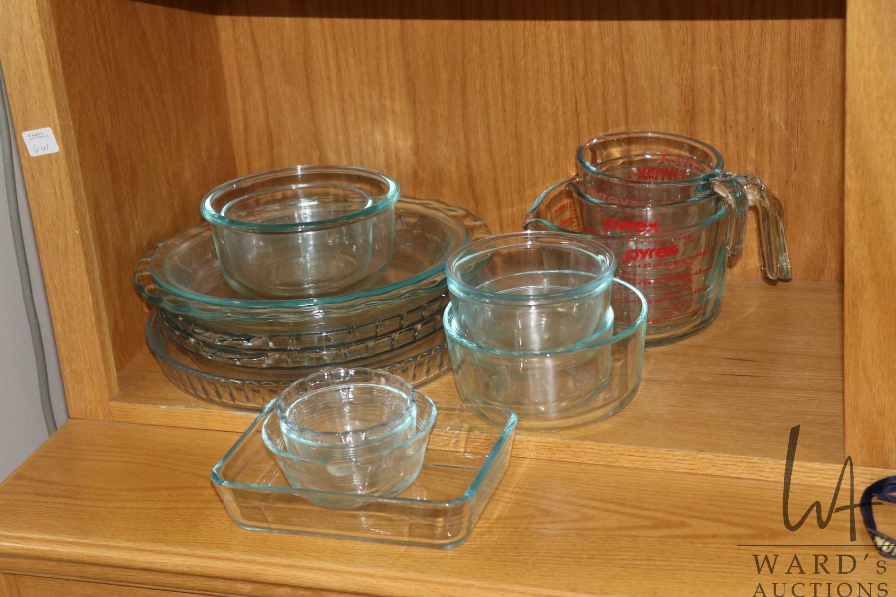 Lot 641 Selection of vintage Pyrex cookware including four pie plates ten clear refrigerator boxes, and thre