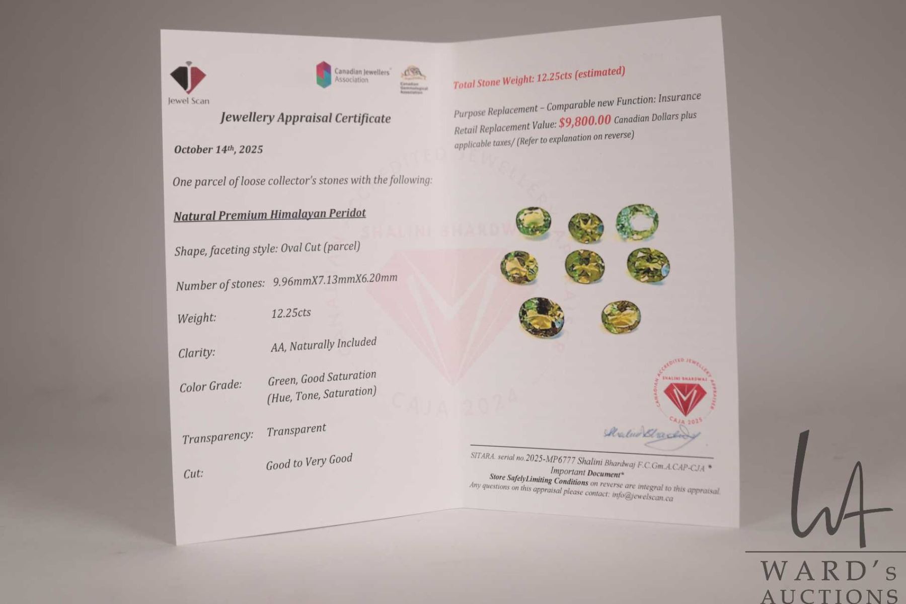 Lot 645 Parcel of oval cut Himalayan peridot, 12. 25 cts. total weight with certificate provided by consigno