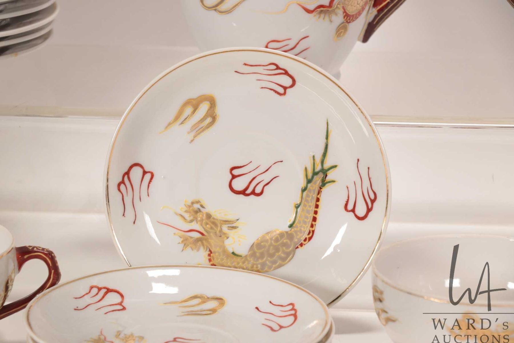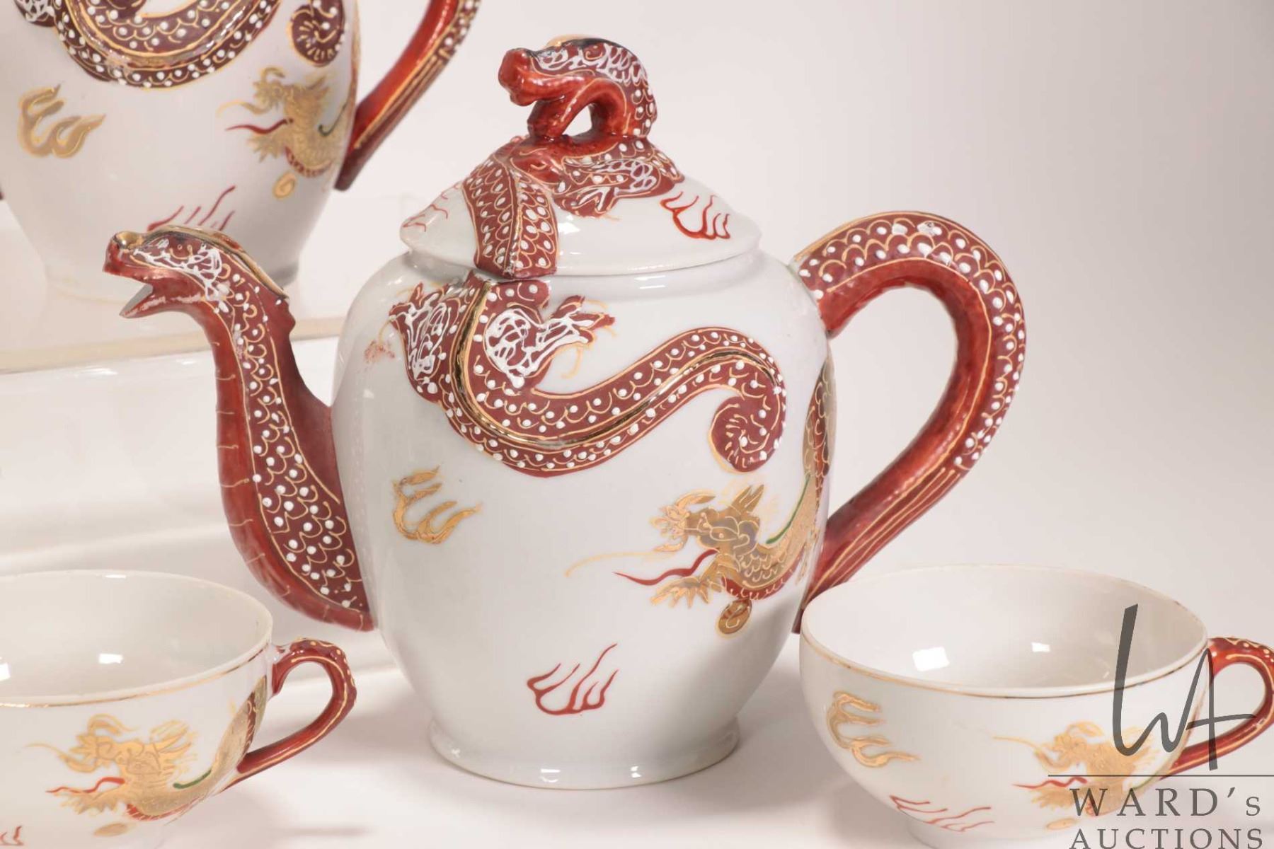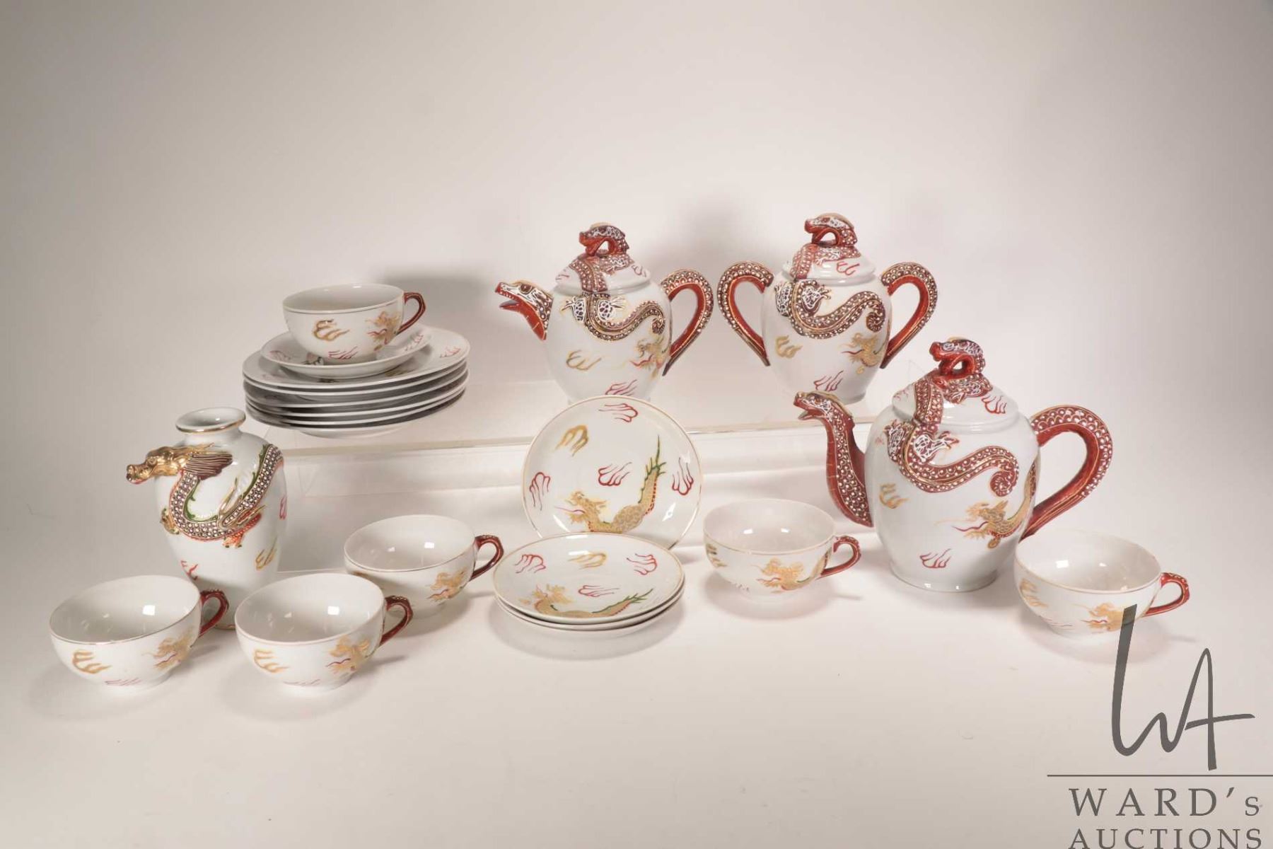 Lot 652 Japanese "Dragonware" Kutani porcelain tea set with moriage beaded detailing and lithopane Geisha in
