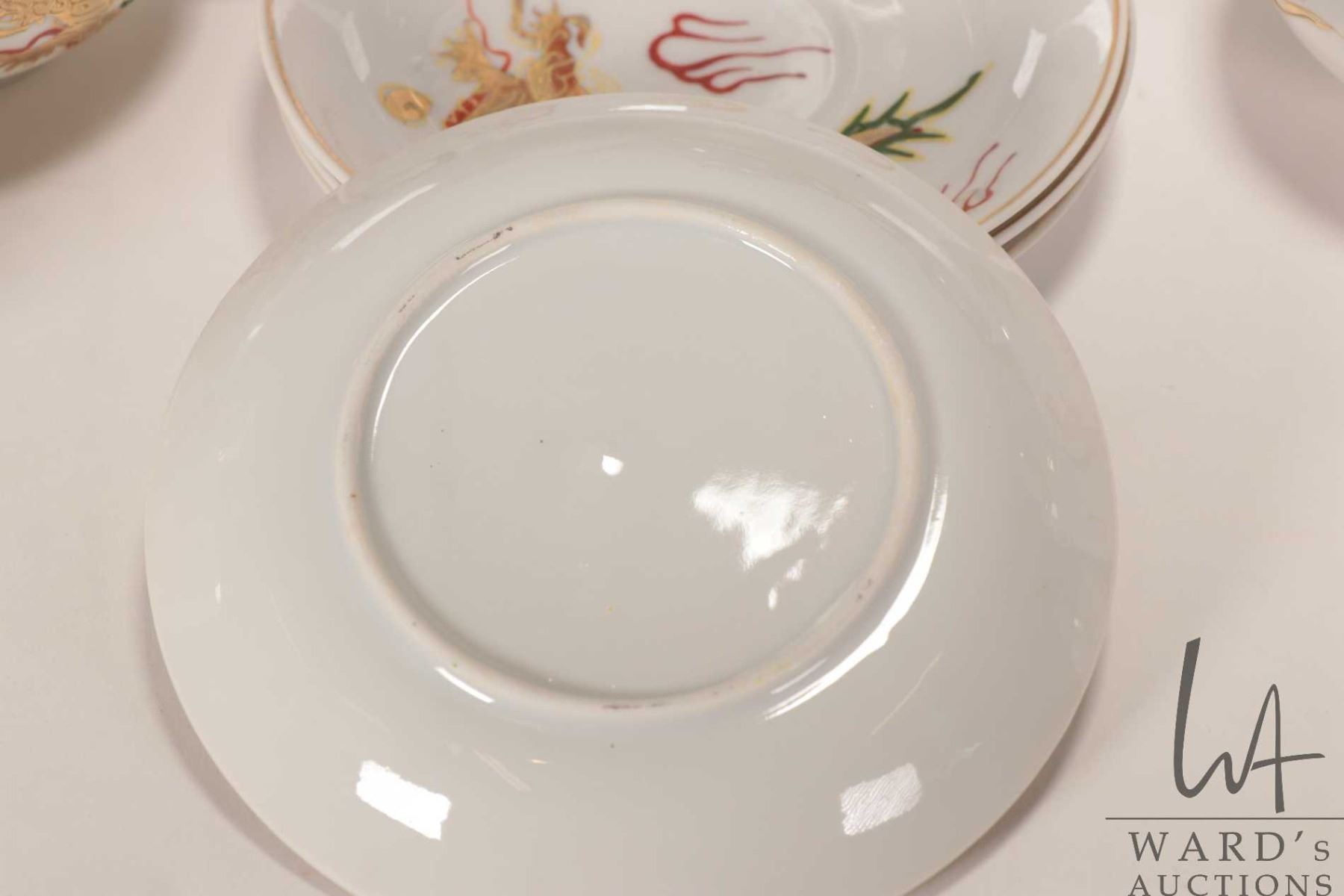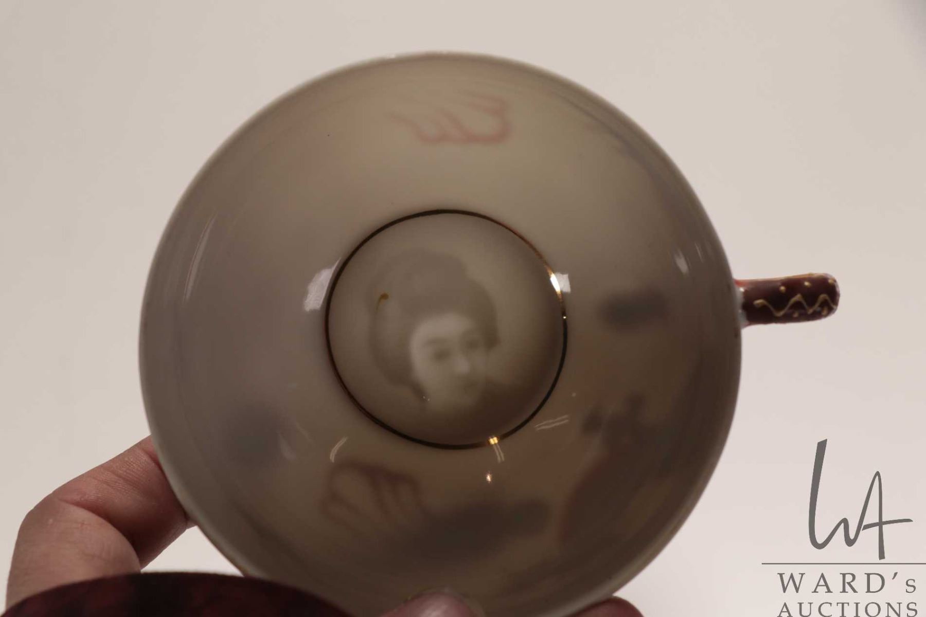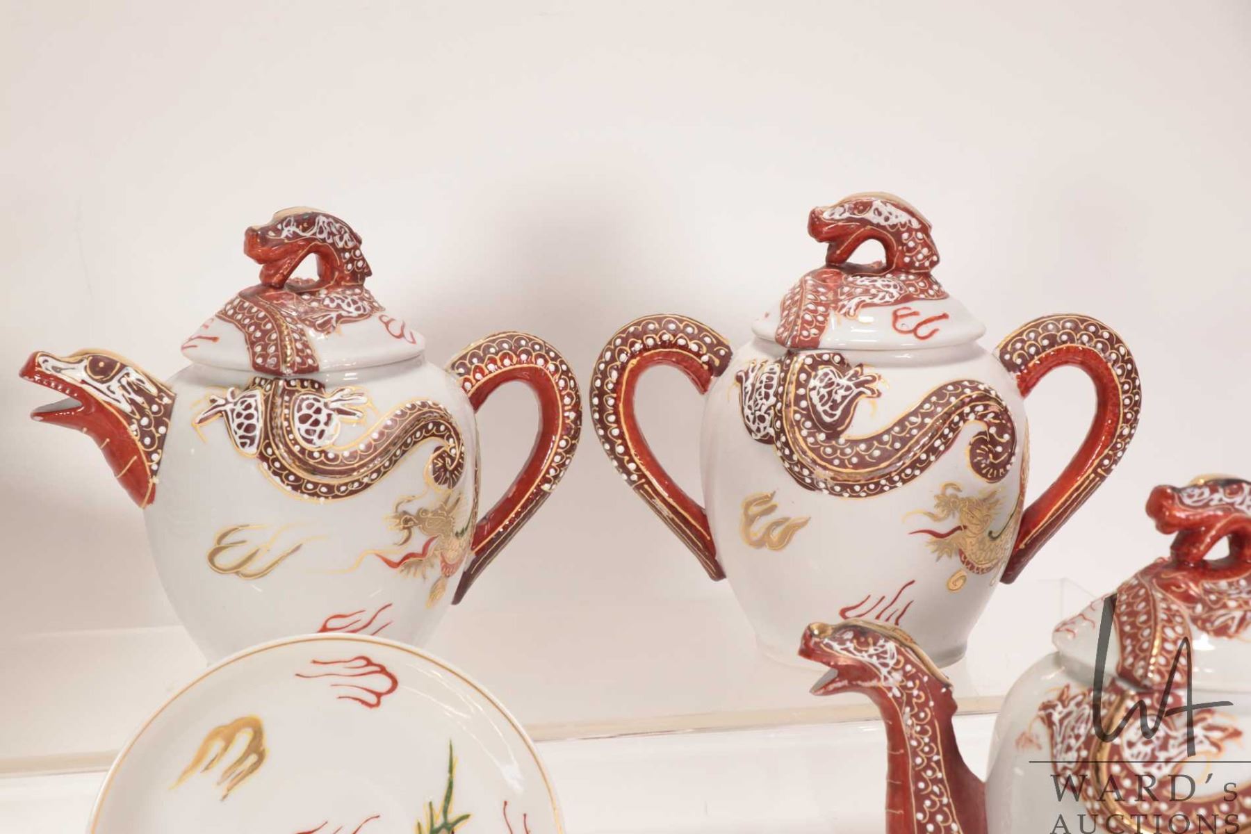 Lot 652 Japanese "Dragonware" Kutani porcelain tea set with moriage beaded detailing and lithopane Geisha in
