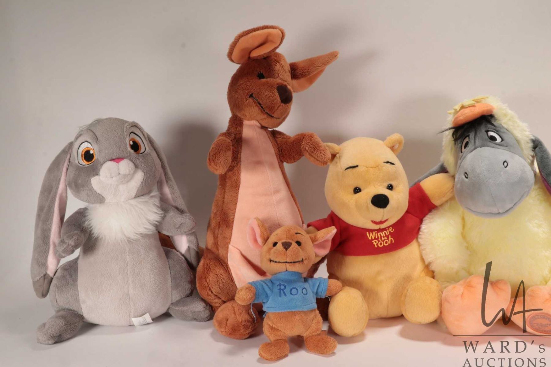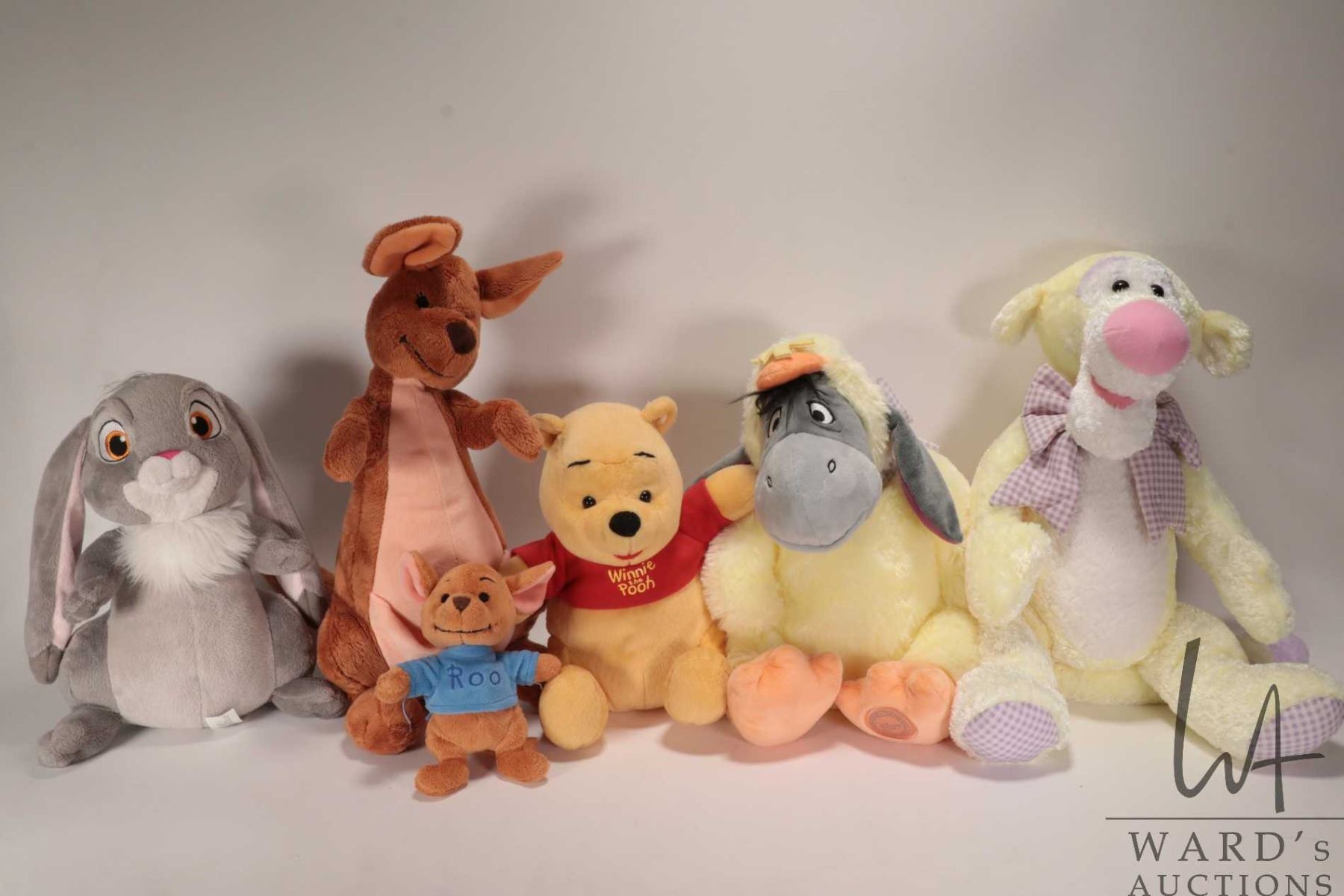 Lot 692 Six Winnie-the-Pooh stuffed animals including Winnie, Eyore, Tigger, Rue and Mama and Rabbit