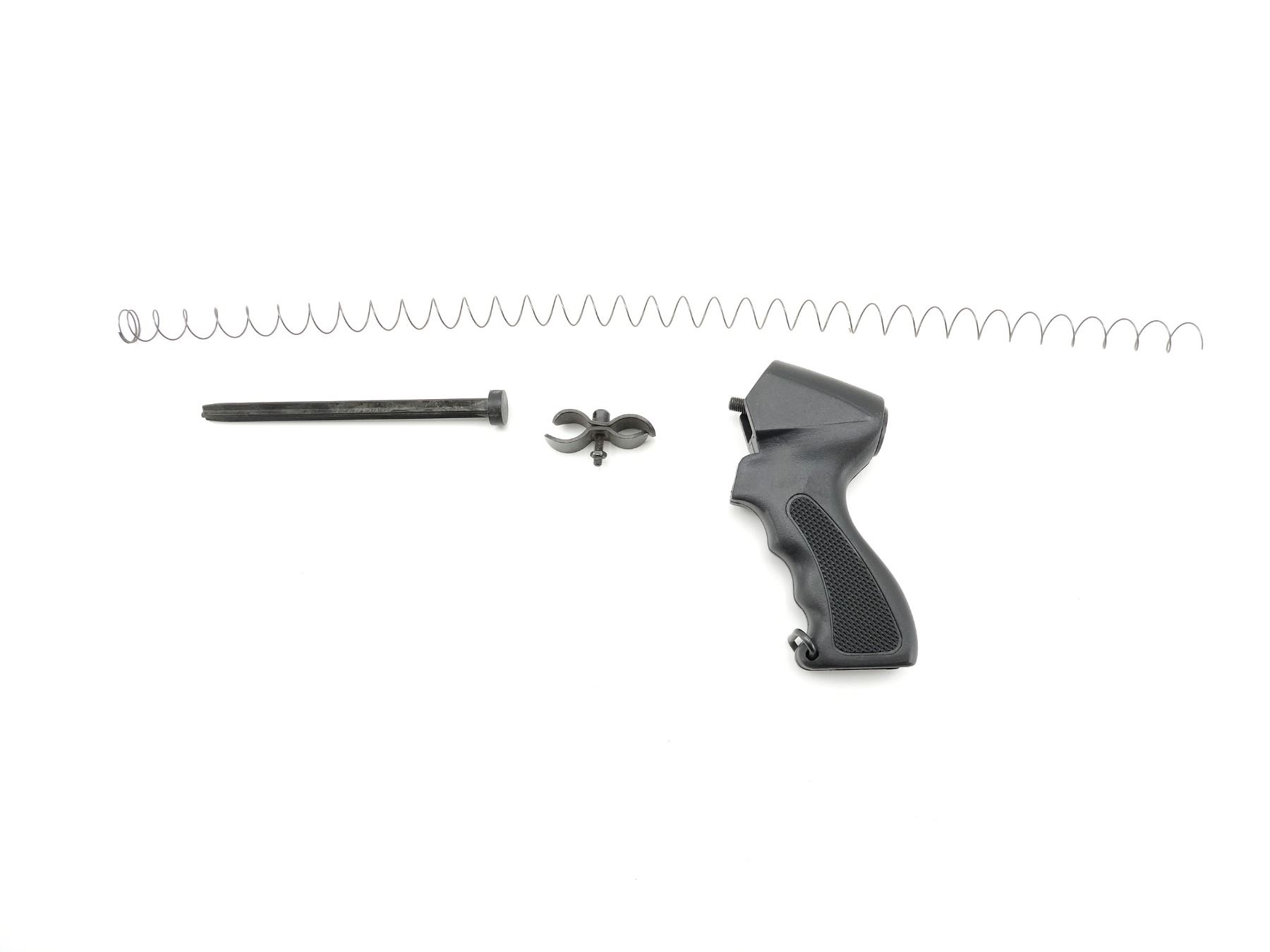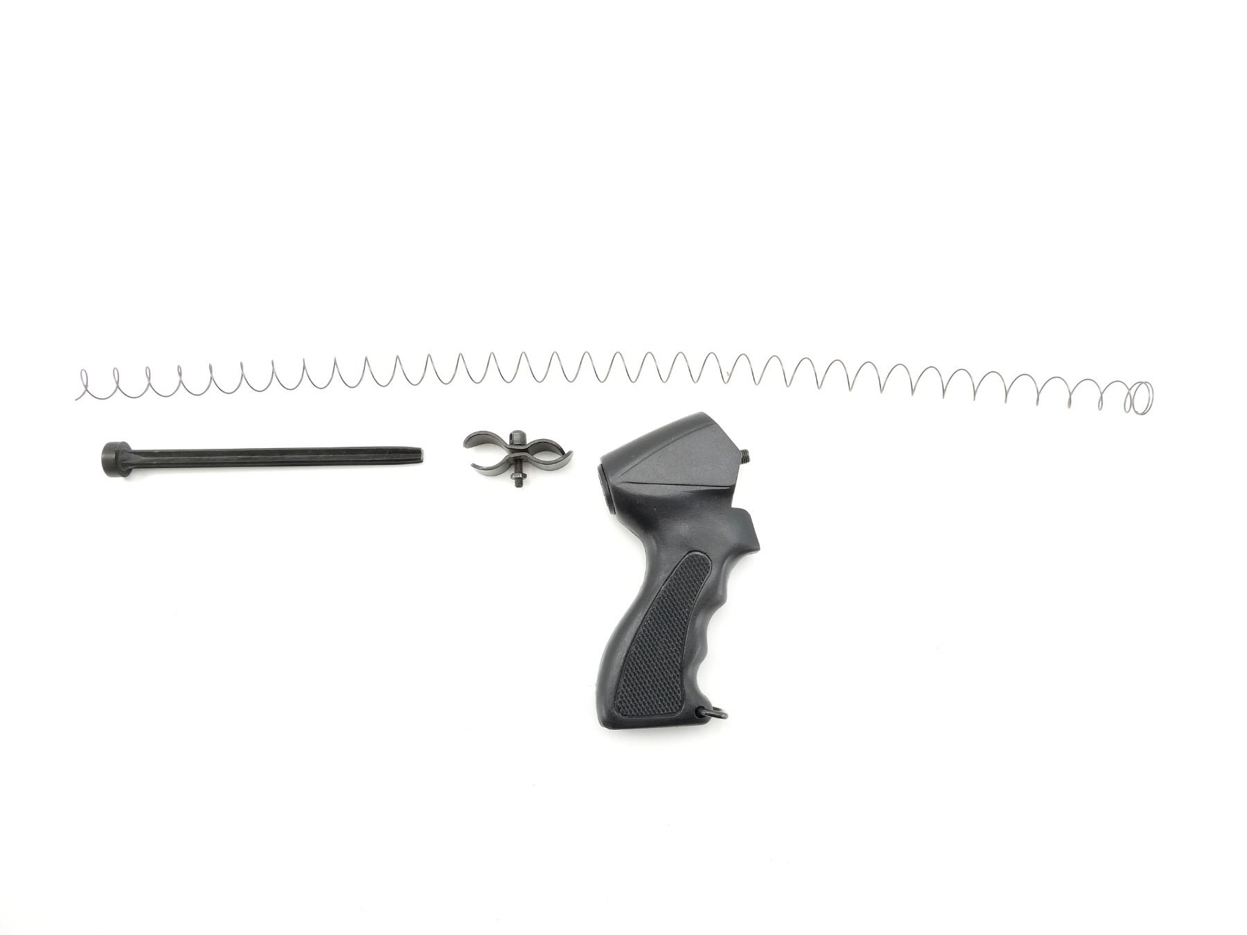 LOT INCLUDES; PISTOL GRIP WITH SCREW, MAG TUBE CLAMP, PLUG, MAG TUBE SPRING, ETC. MAY REQUIRE FITTING. SEE PHOTOS.