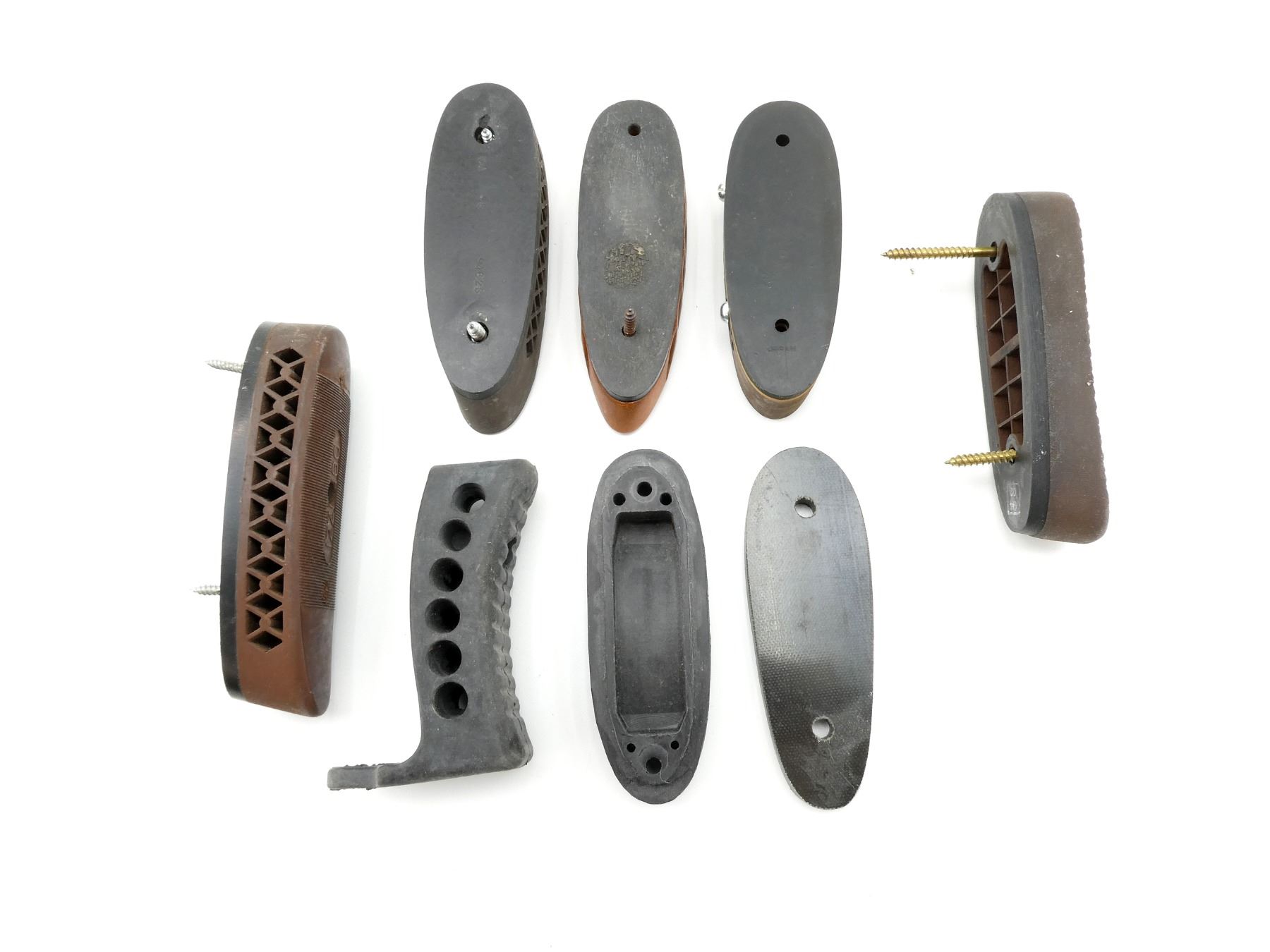 LOT INCLUDES; (8) ASSORTED RECOIL PADS, VARIOUS SIZES / COLOURS / THICKNESS, ETC. MAY REQUIRE FITTING. SEE PHOTOS.
