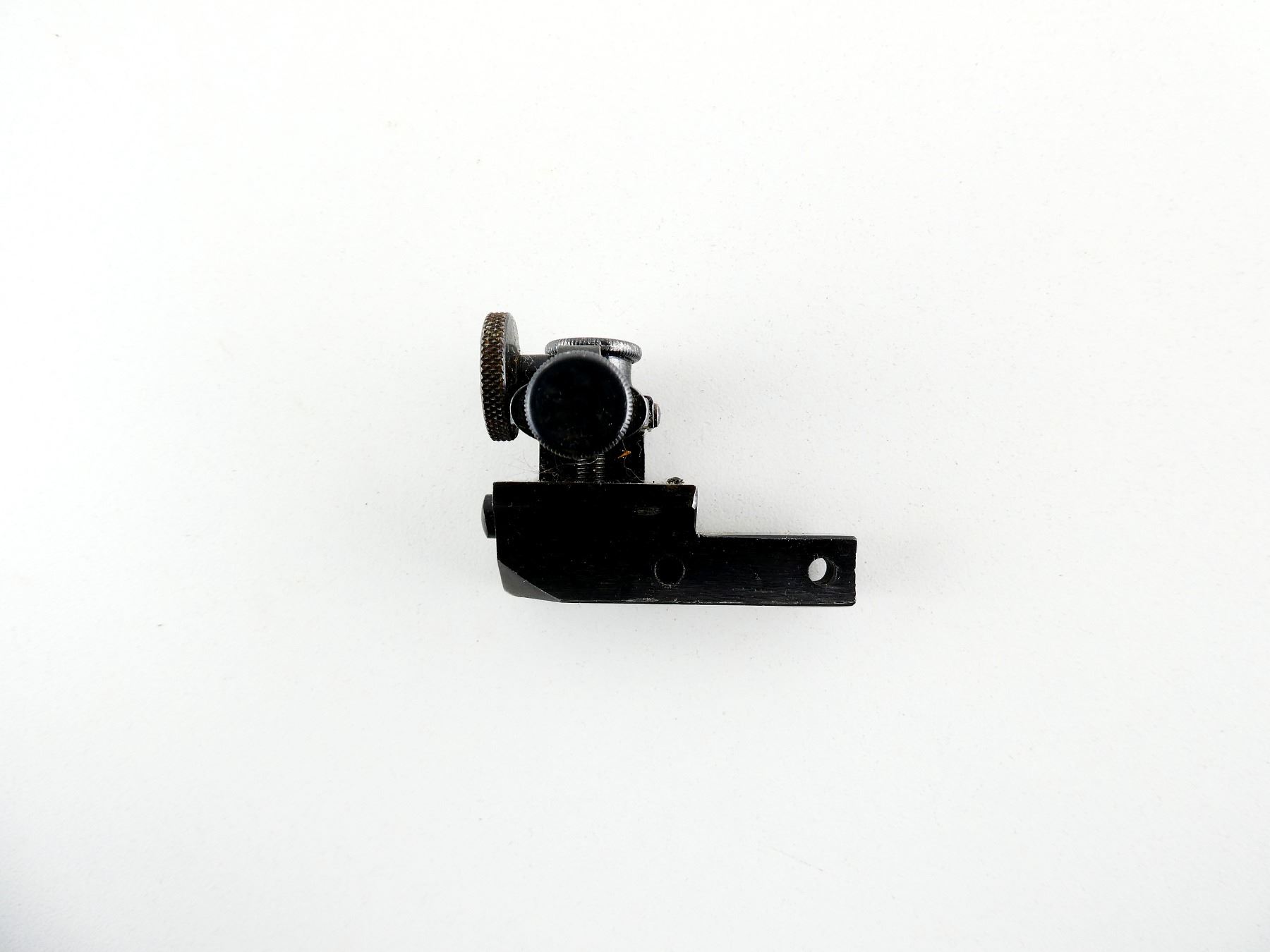 (1) ADJUSTABLE PEEP SIGHT, BLUED STEEL CONSTRUCTION, MISSING SCREWS, MARKED: "LYMAN", "57RS", ETC. MAY REQUIRE FITTING. SEE PHOTOS.