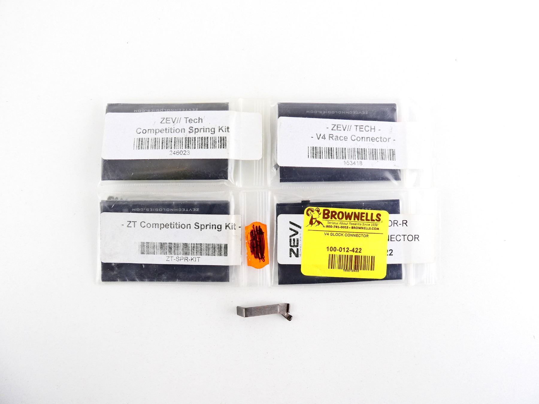 LOT INCLUDES; V4 RACE CONNECTORS, COMPETITION SPRING KITS, STANDARD GLOCK CONNECTOR, ETC. MAY REQUIRE FITTING. SEE PHOTOS.