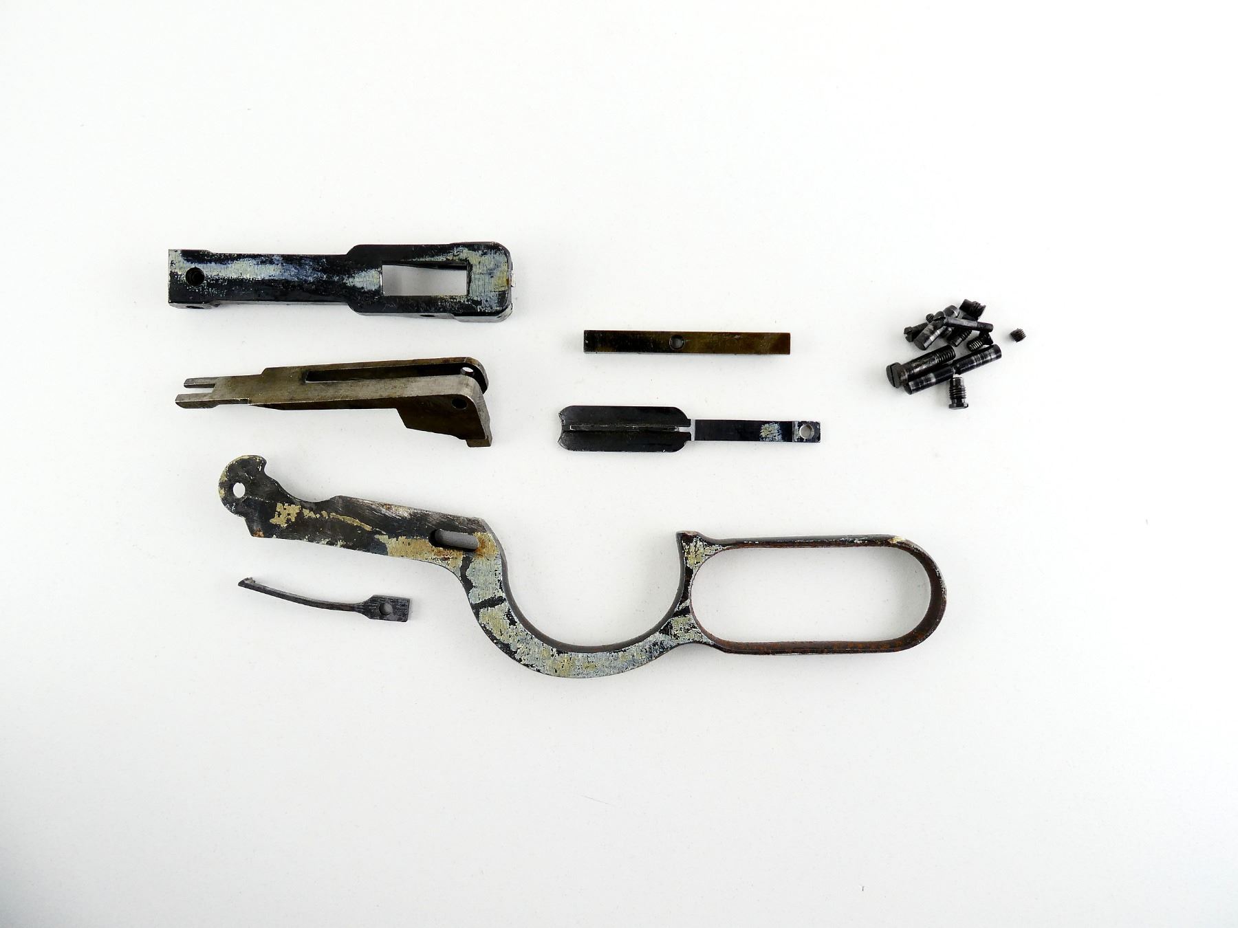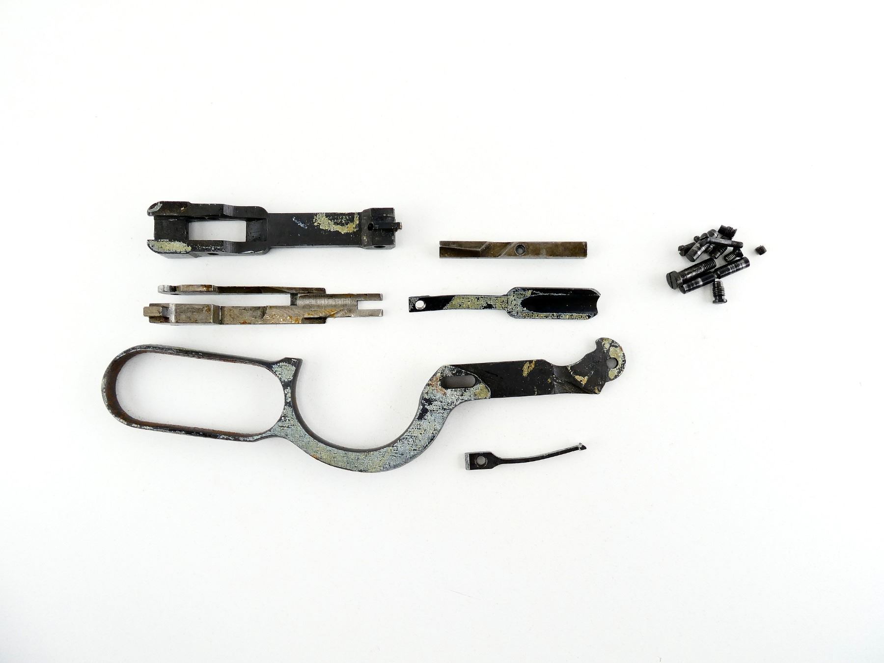 LOT INCLUDES; LINK, MILLED LIFTER WITH SPRING, LEVER, LOADING GATE, CARTRIDGE GUIDE, VARIOUS SCREWS / PINS, ETC. MAY REQUIRE FITTING. SEE PHOTOS.