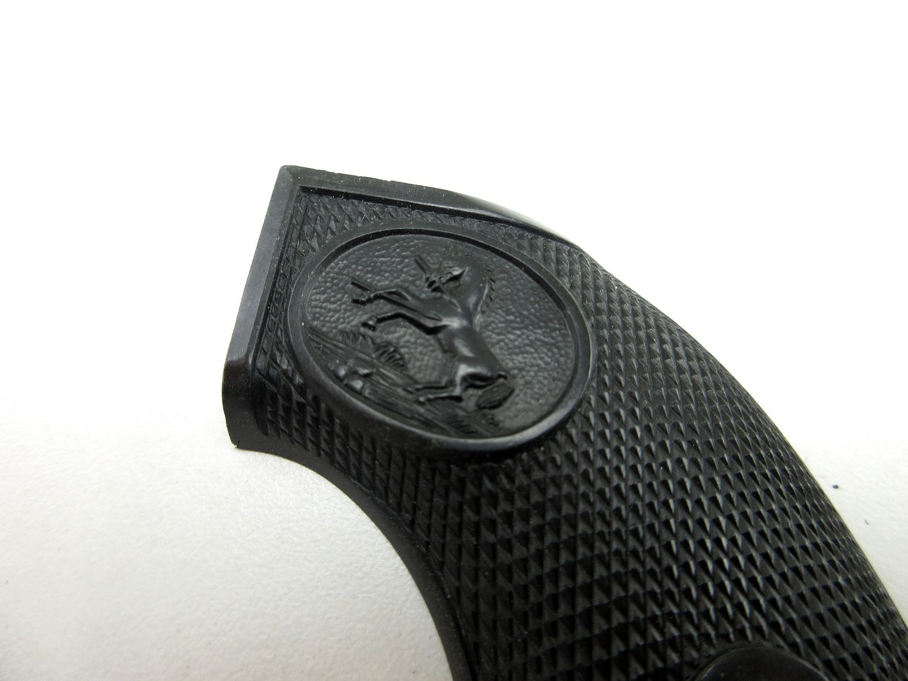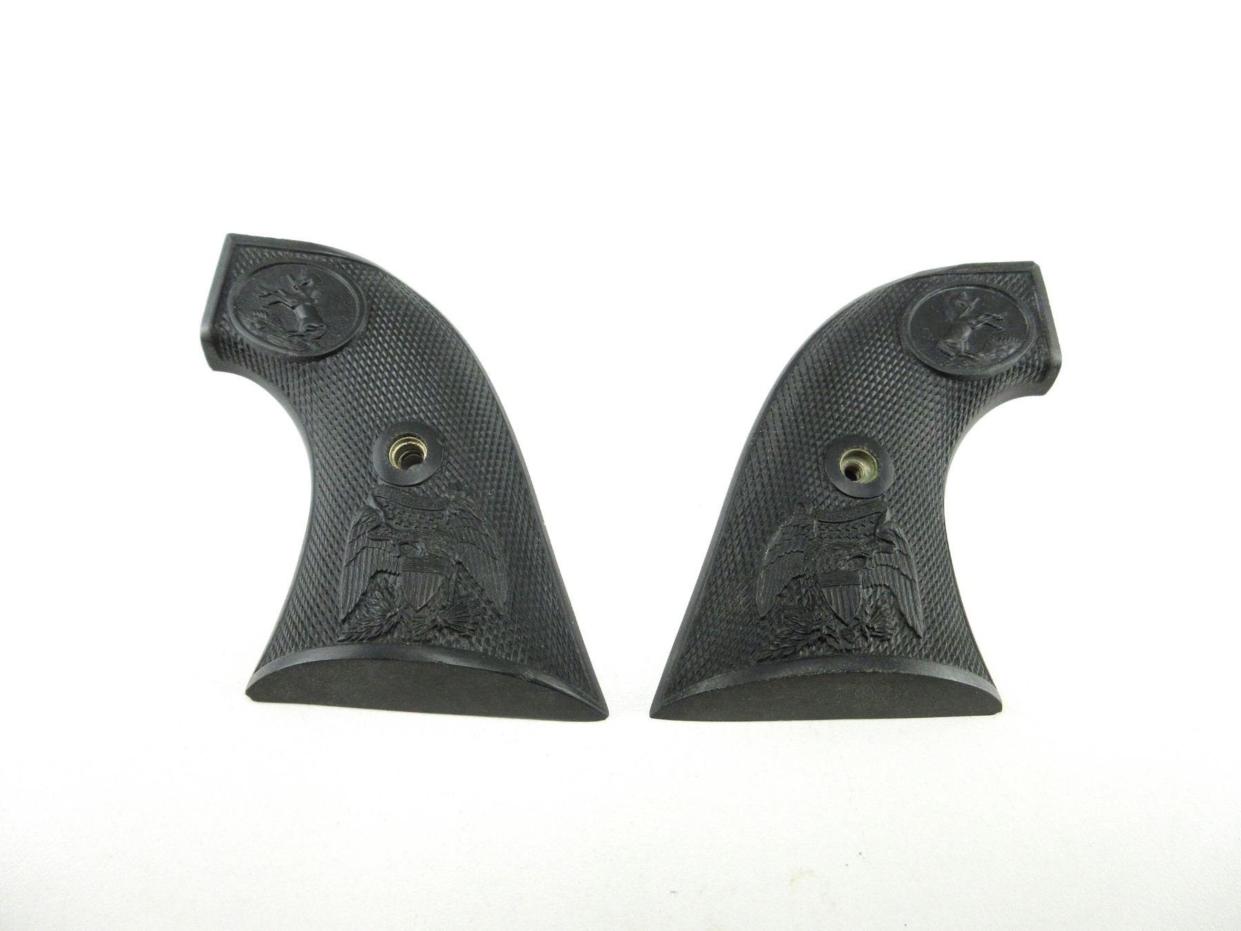 (1) SET OF BLACK POLYMER CHECKERED GRIPS, WITH COLT AND EAGLE LOGOS, NO SCREW. MAY REQUIRE FITTING. SEE PHOTOS.