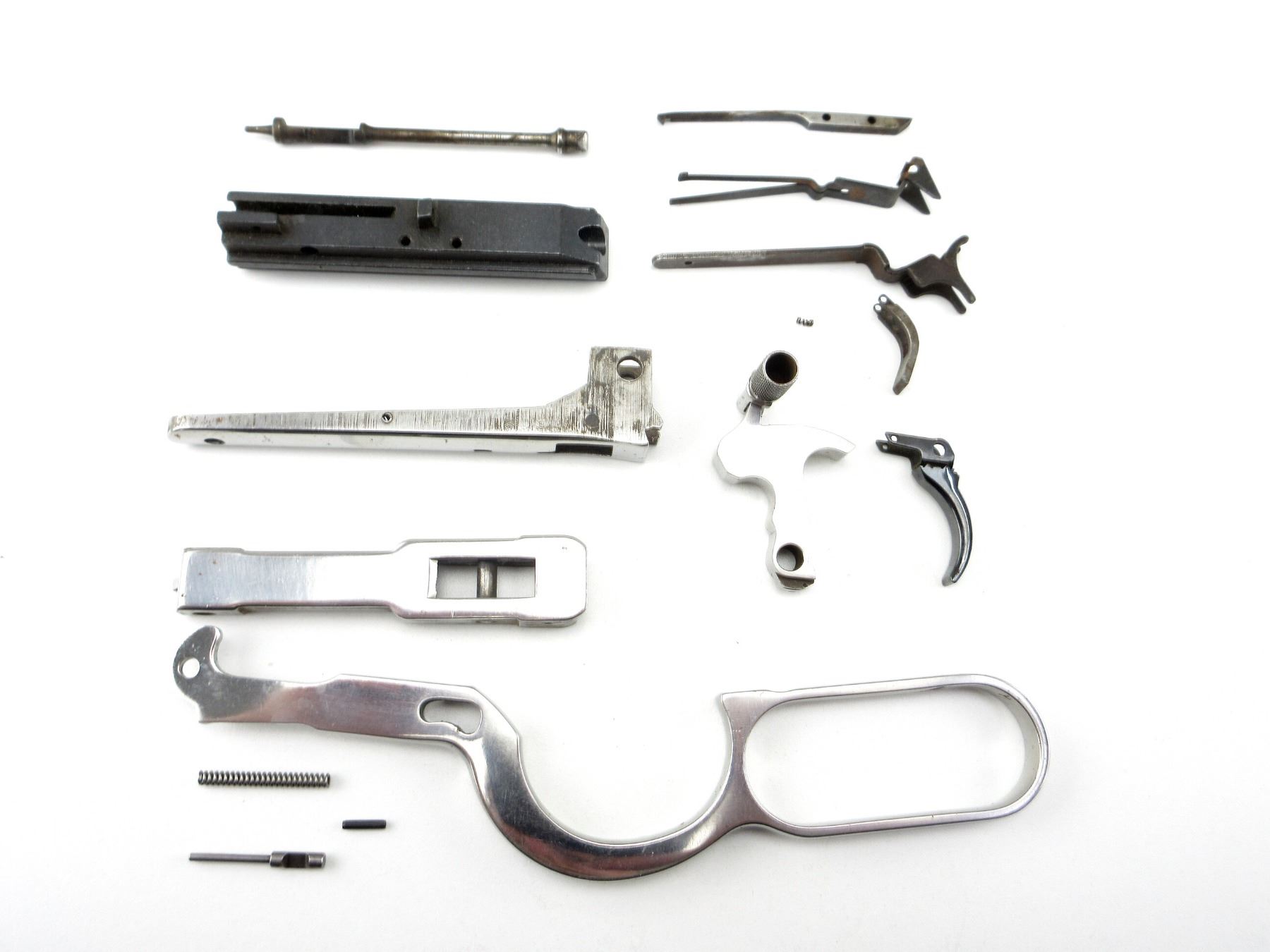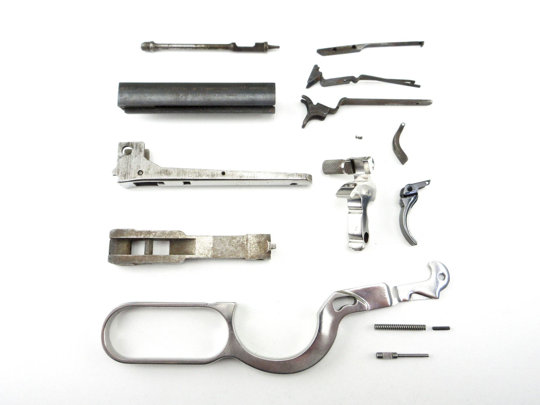 LOT INCLUDES; LEVER, LINK, HAMMER, LOWER TANG, STRIPPED BOLT, EXTRACTOR, FIRING PIN, TRIGGER, ETC. MAY REQUIRE FITTING. SEE PHOTOS.