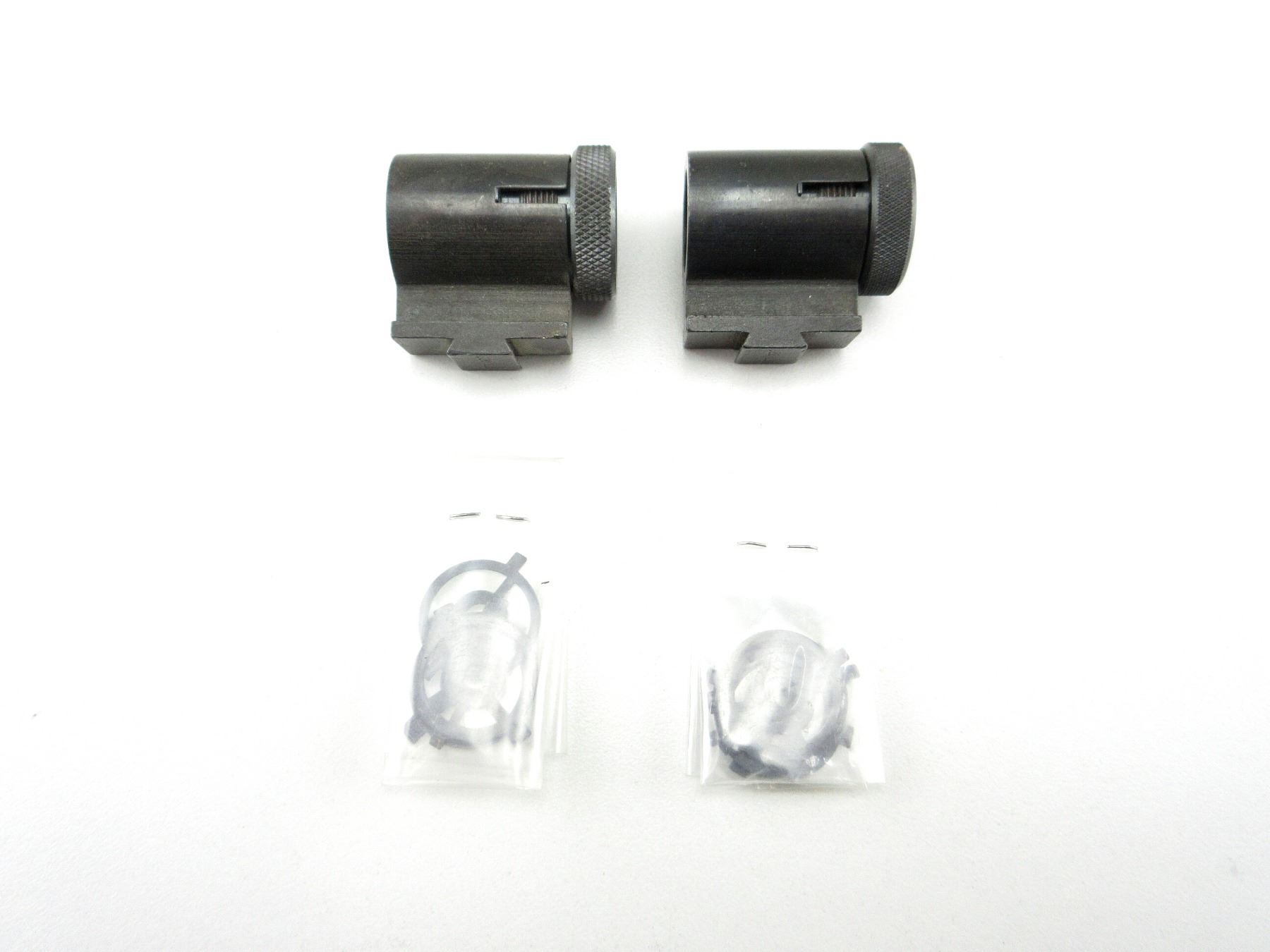 LOT INCLUDES; (2) FRONT GLOBE SIGHTS, BLUED STEEL CONSTRUCTION, MARKED: ".20 LJT" & (10) ASSORTED INSERTS, APPROX. DIA. 0.690". MAY REQUIRE FITTING. SEE PHOTOS.