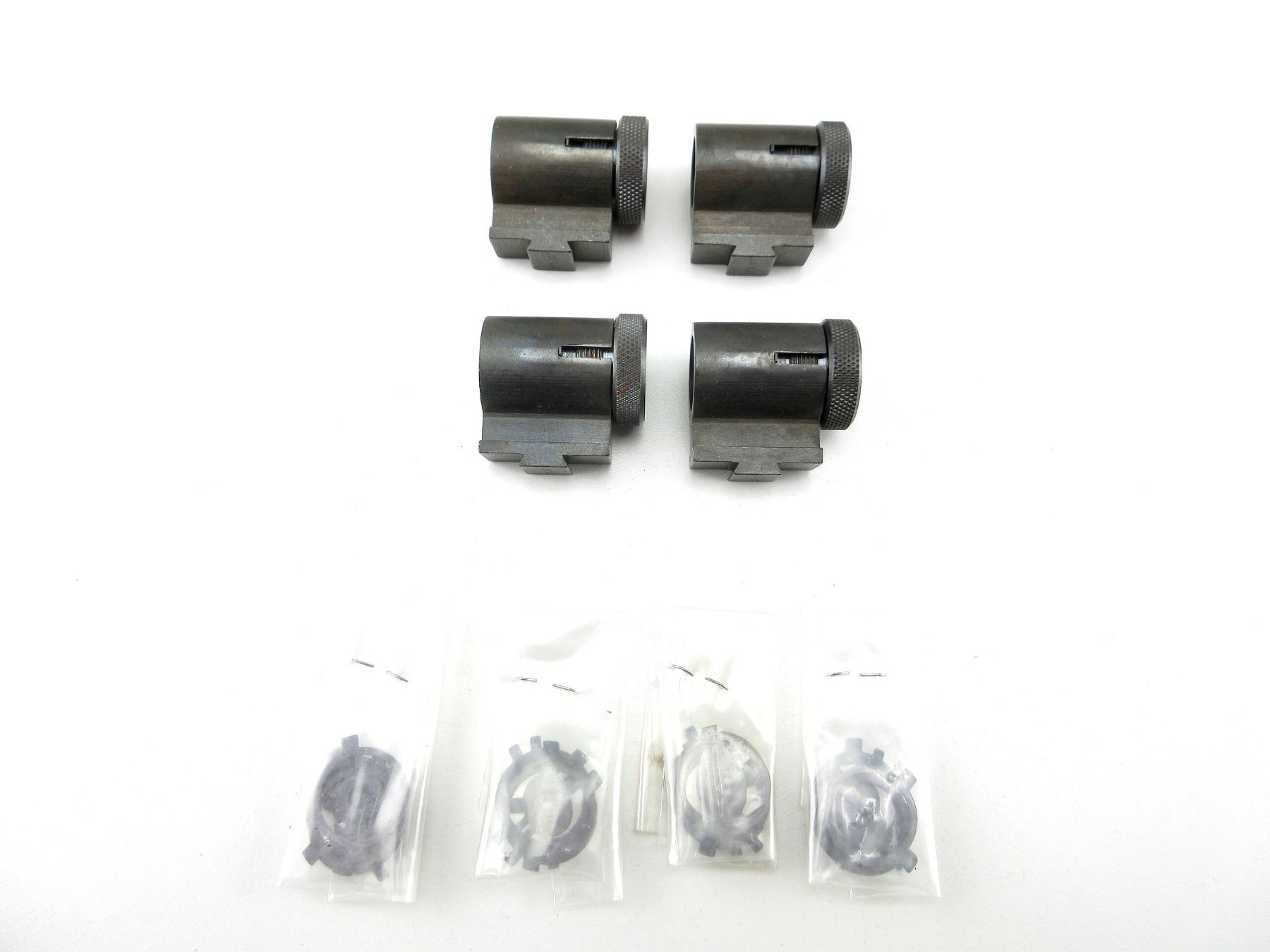 LOT INCLUDES; (4) FRONT GLOBE SIGHTS, BLUED STEEL CONSTRUCTION, MARKED: ".20 LJT" & (20) ASSORTED INSERTS, APPROX. DIA. 0.690". MAY REQUIRE FITTING. SEE PHOTOS.