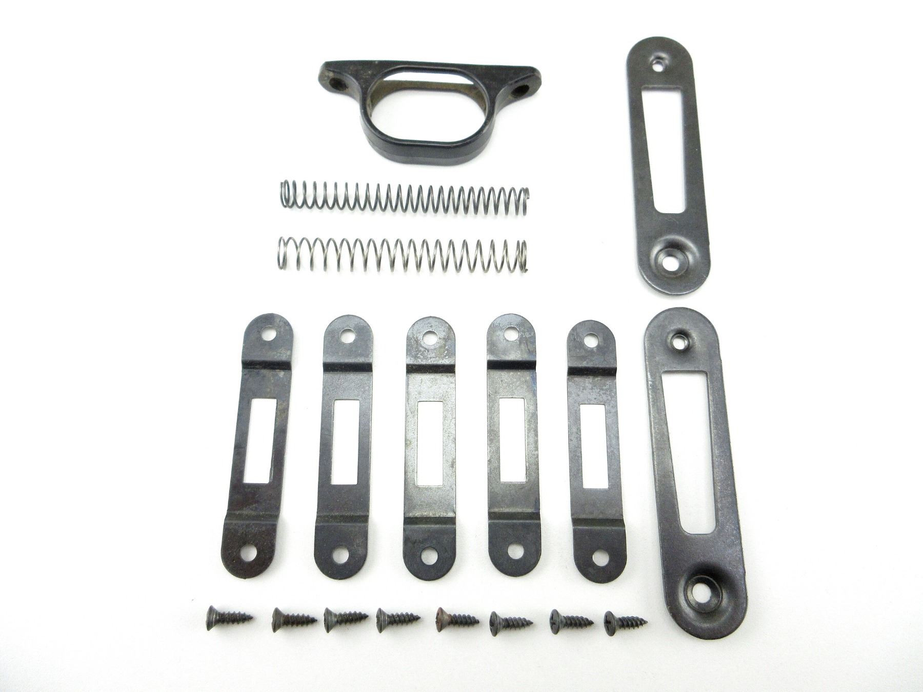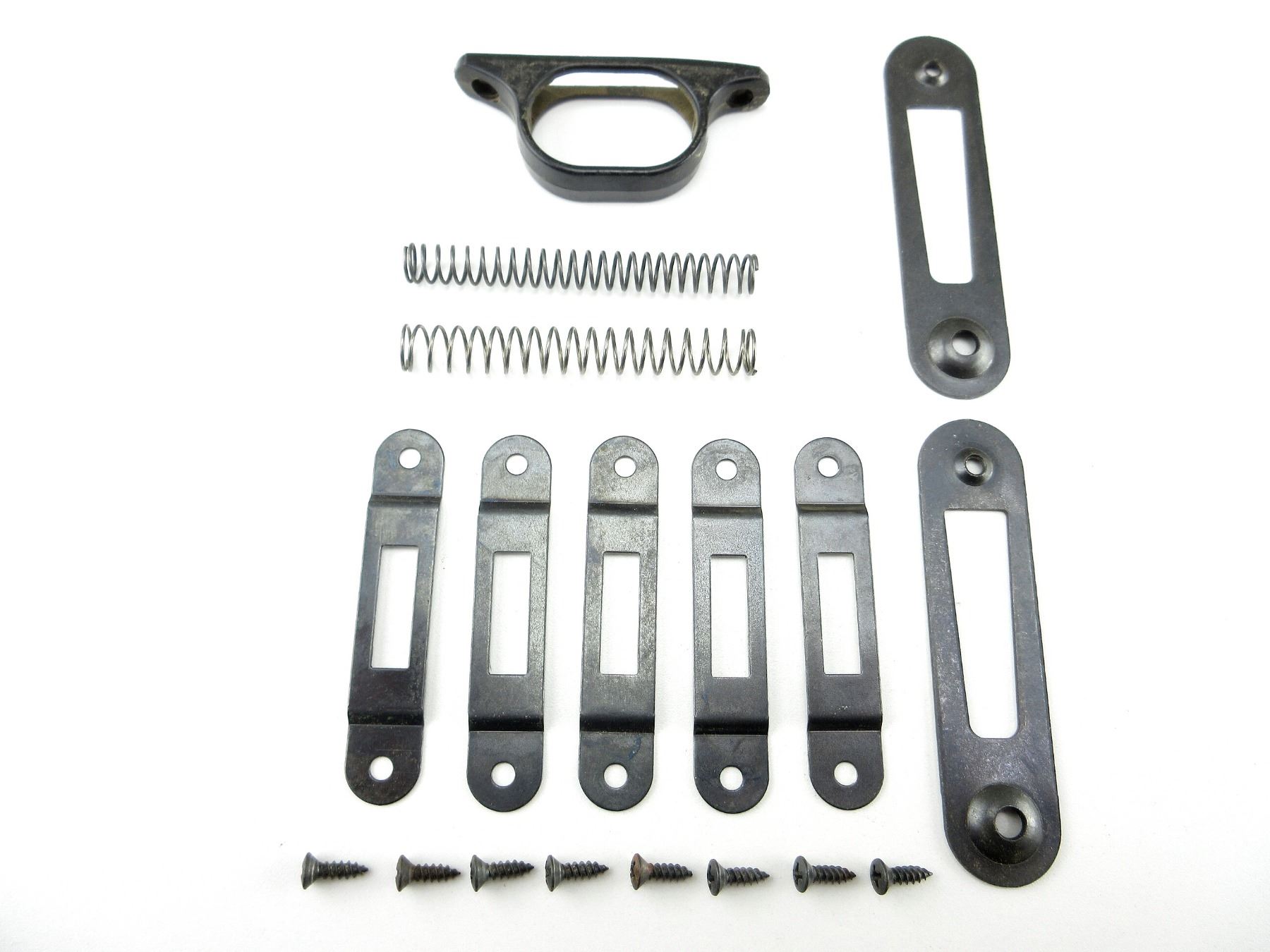LOT INCLUDES; BLACK POLYMER TRIGGER GUARD, (2) MAGAZINE FLOOR PLAT, (8) SCREWS, (5) TRIGGER GUARD SPACERS, ETC. MAY REQUIRE FITTING. SEE PHOTOS.