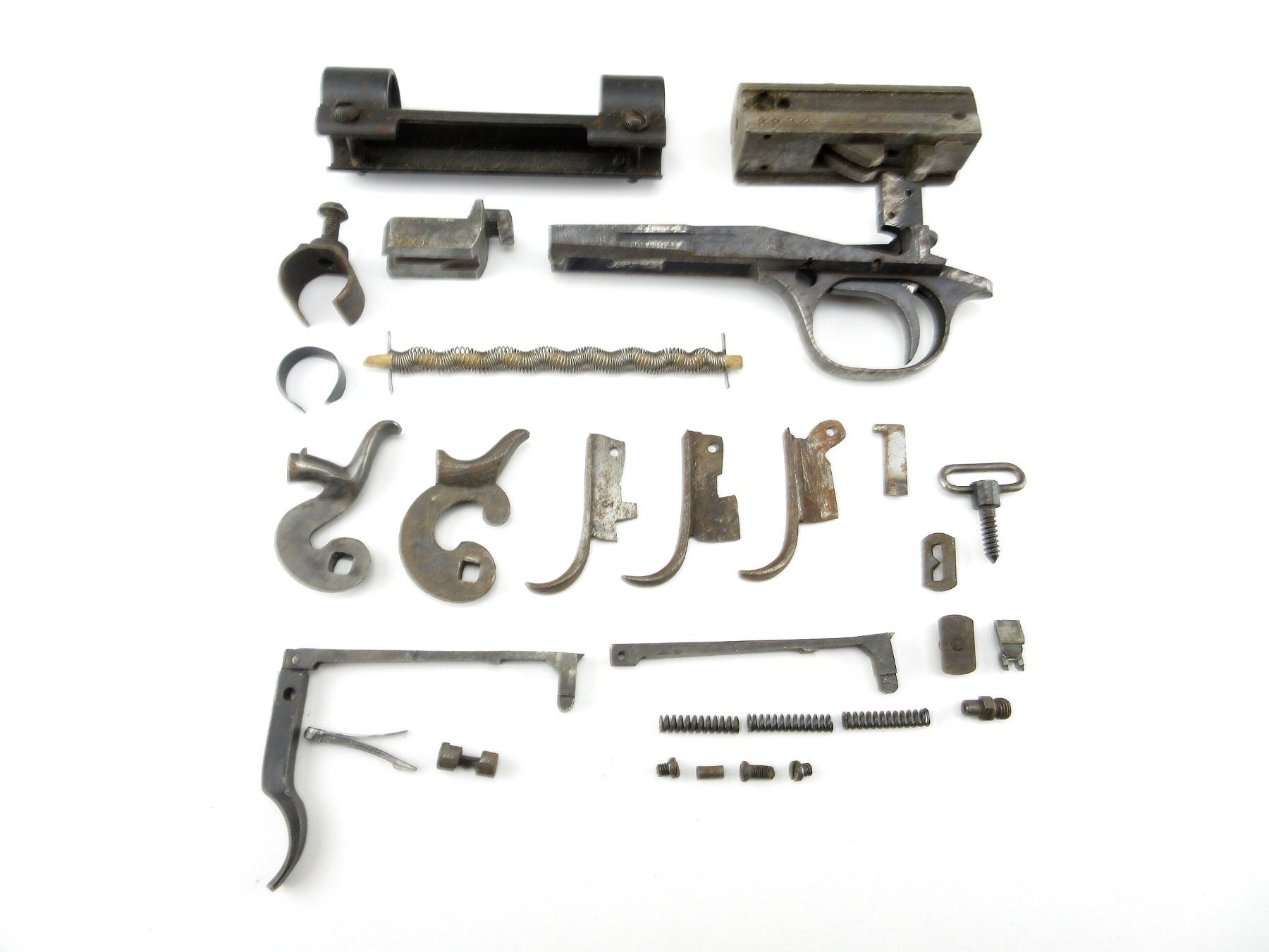 LOT INCLUDES; BROWNING SA22 TRIGGER GUARD, UNKNOWN SHOT GUN BOLT, HAMMERS, TRIGGERS, SWIVEL, SCREWS / SPRINGS, ETC. MAY REQUIRE FITTING. SEE PHOTOS.
