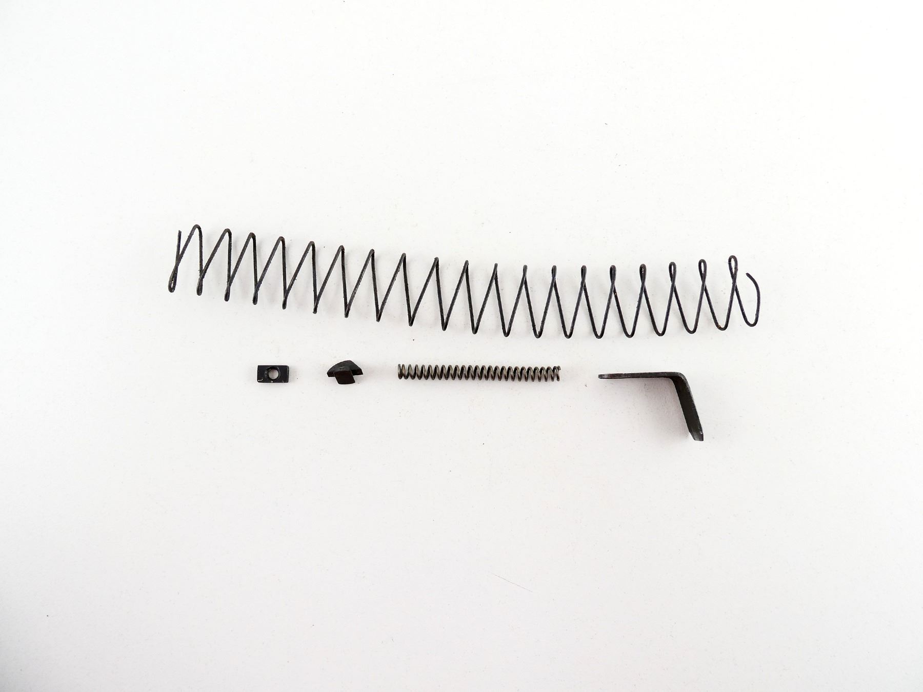 LOT INCLUDES; WEBLEY 1907 MAG PARTS, UNKNOWN SPRING, HI-POWER FRONT SIGHT, ETC. MAY REQUIRE FITTING. SEE PHOTOS.