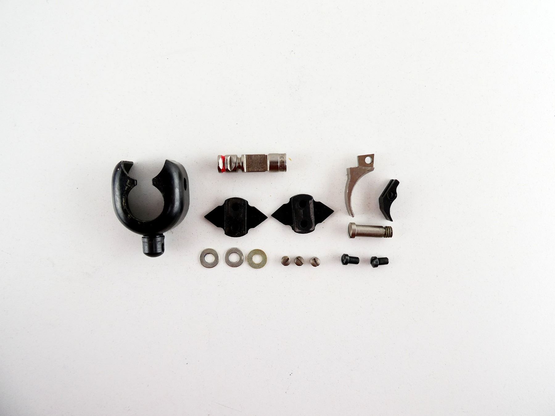 LOT INCLUDES; TRIGGER, MAG END CAP, LEVER SCREW, REAR SIGHT PLUGS, WASHERS, TOP TANG SCREWS, /ETEC. MAY REQUIRE FITTING. SEE PHOTOS.