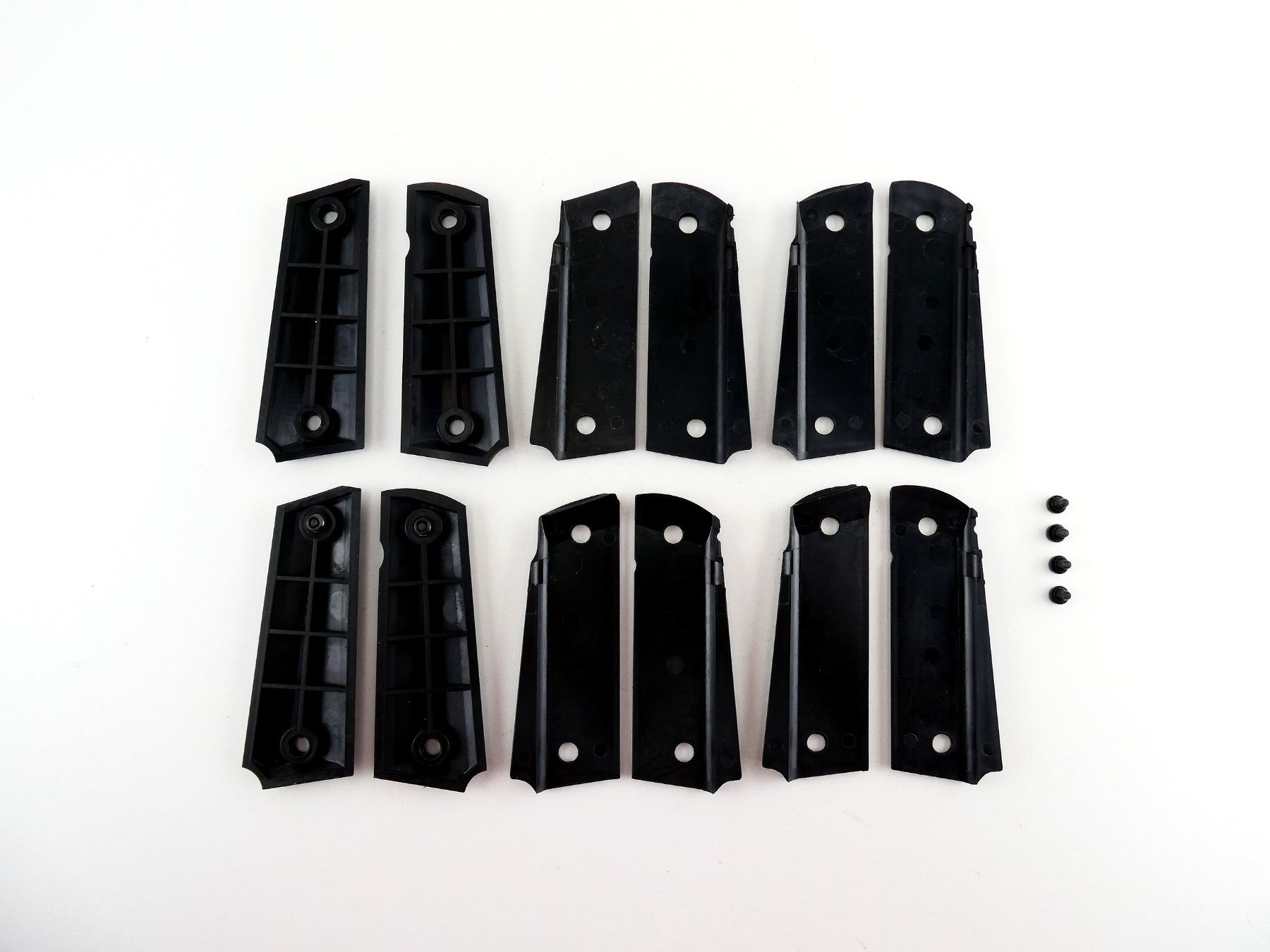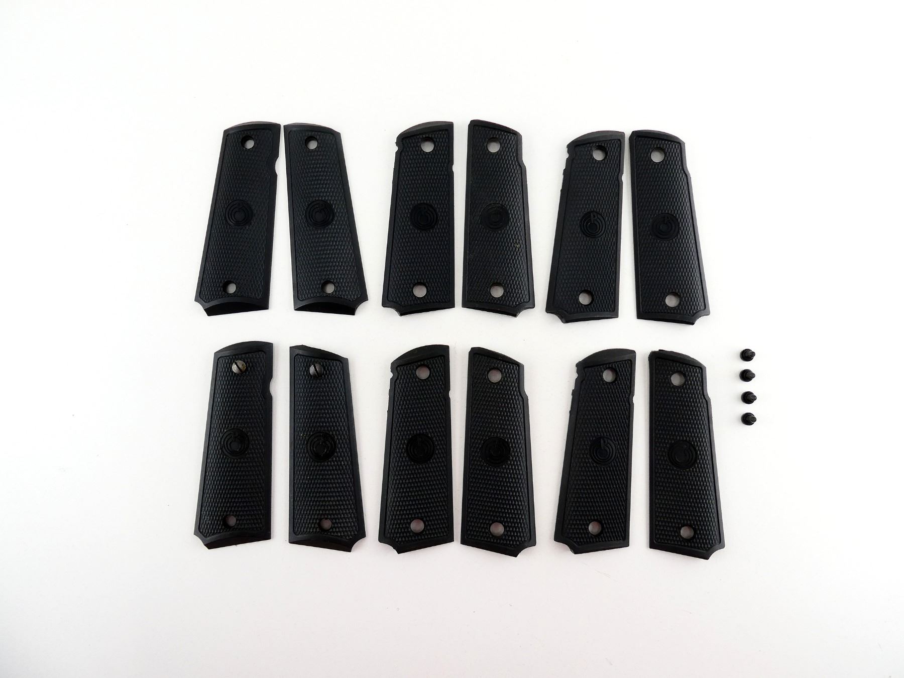 LOT INCLUDES; (6) SETS OF CHECKERED BLACK POLYMER GRIPS, NO SCREWS, APPEARS NEW OLD STOCK. MAY REQUIRE FITTING. SEE PHOTOS.