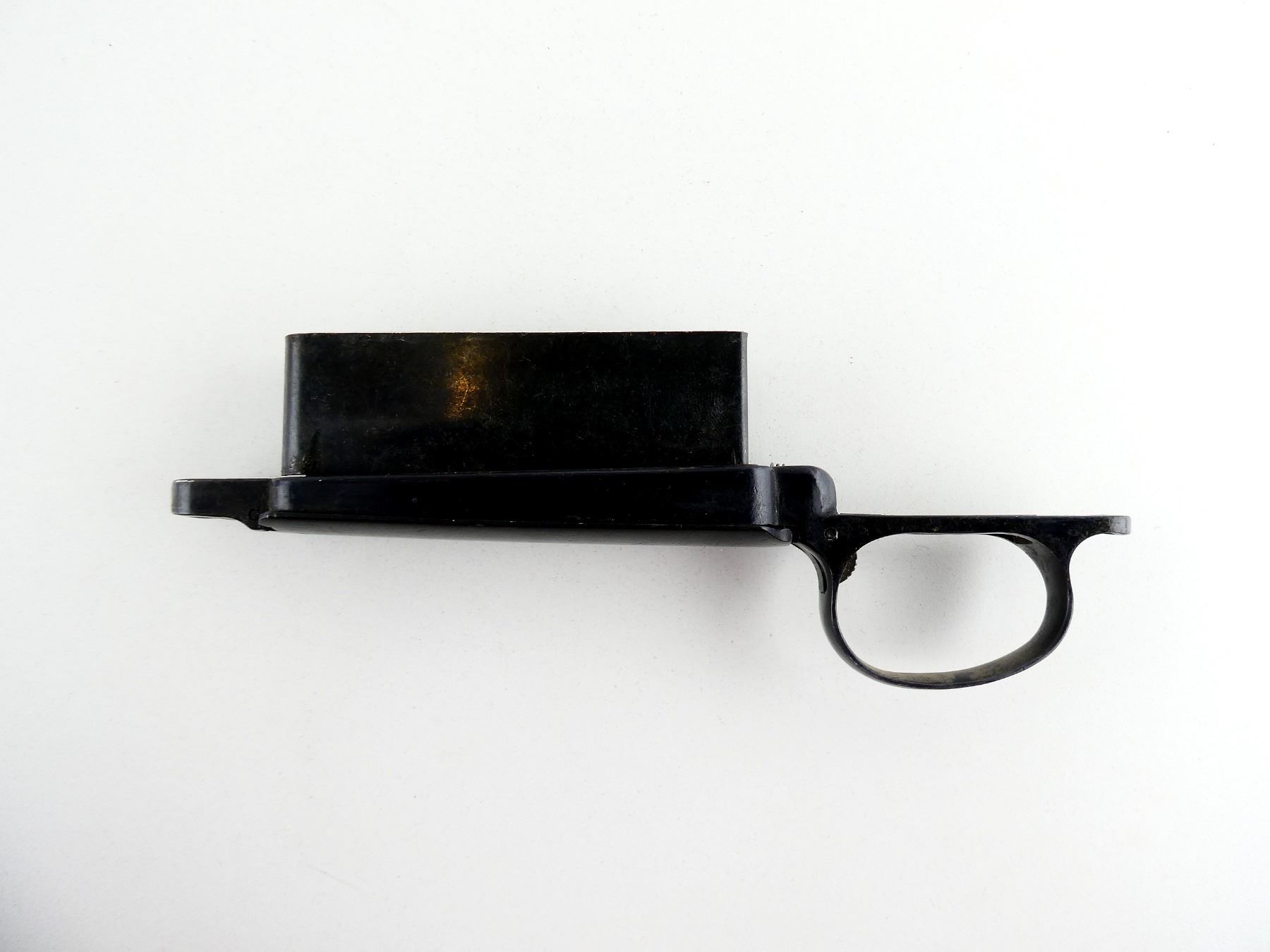 LOT INCLUDES; (1) BLACK ALLOY TRIGGER GUARD, HINGED FLOOR PLATE, BLUED STEEL MAG BOX, UNMARKED, OVERALL LENGTH APPROX. 8". MAY REQUIRE FITTING. SEE PHOTOS.