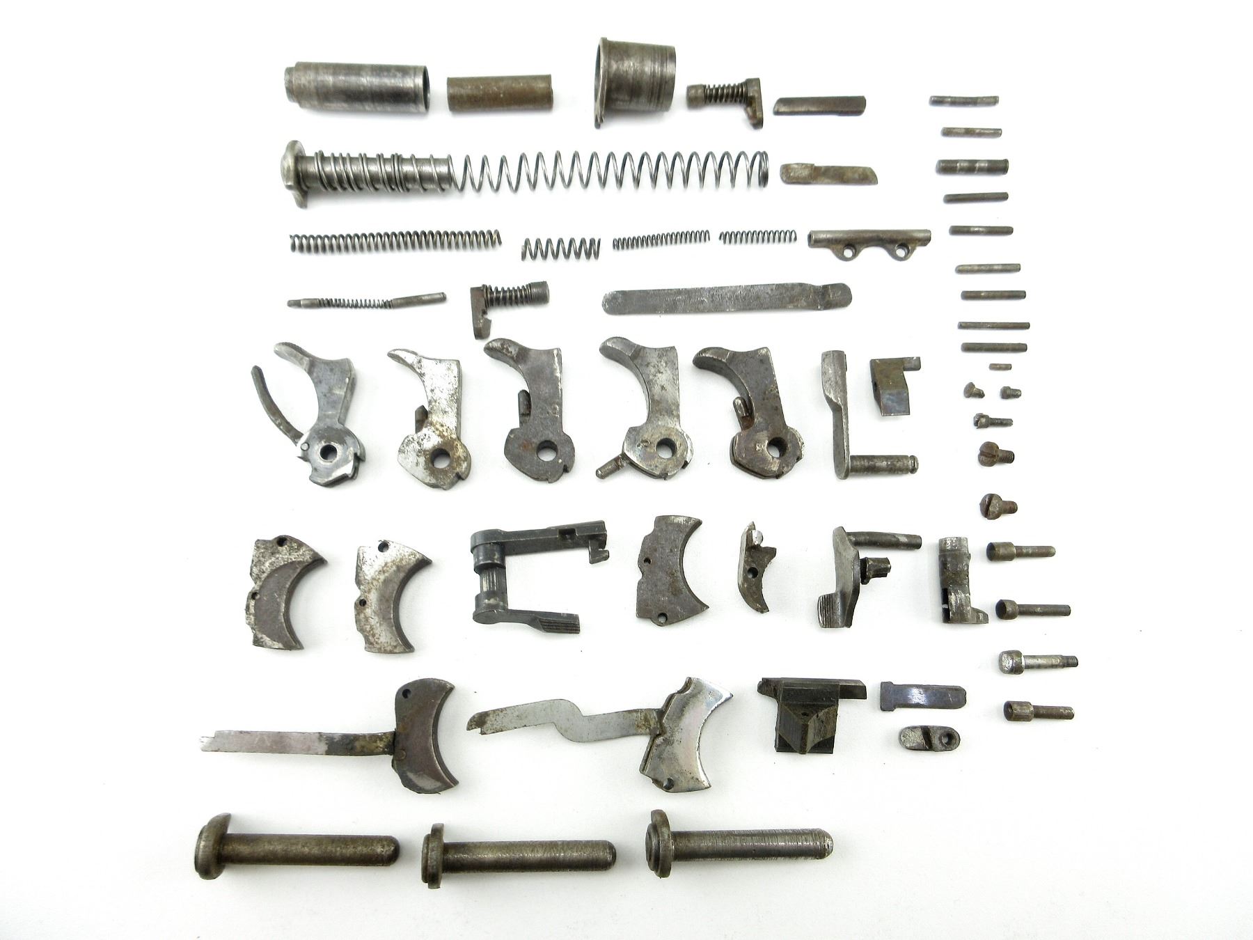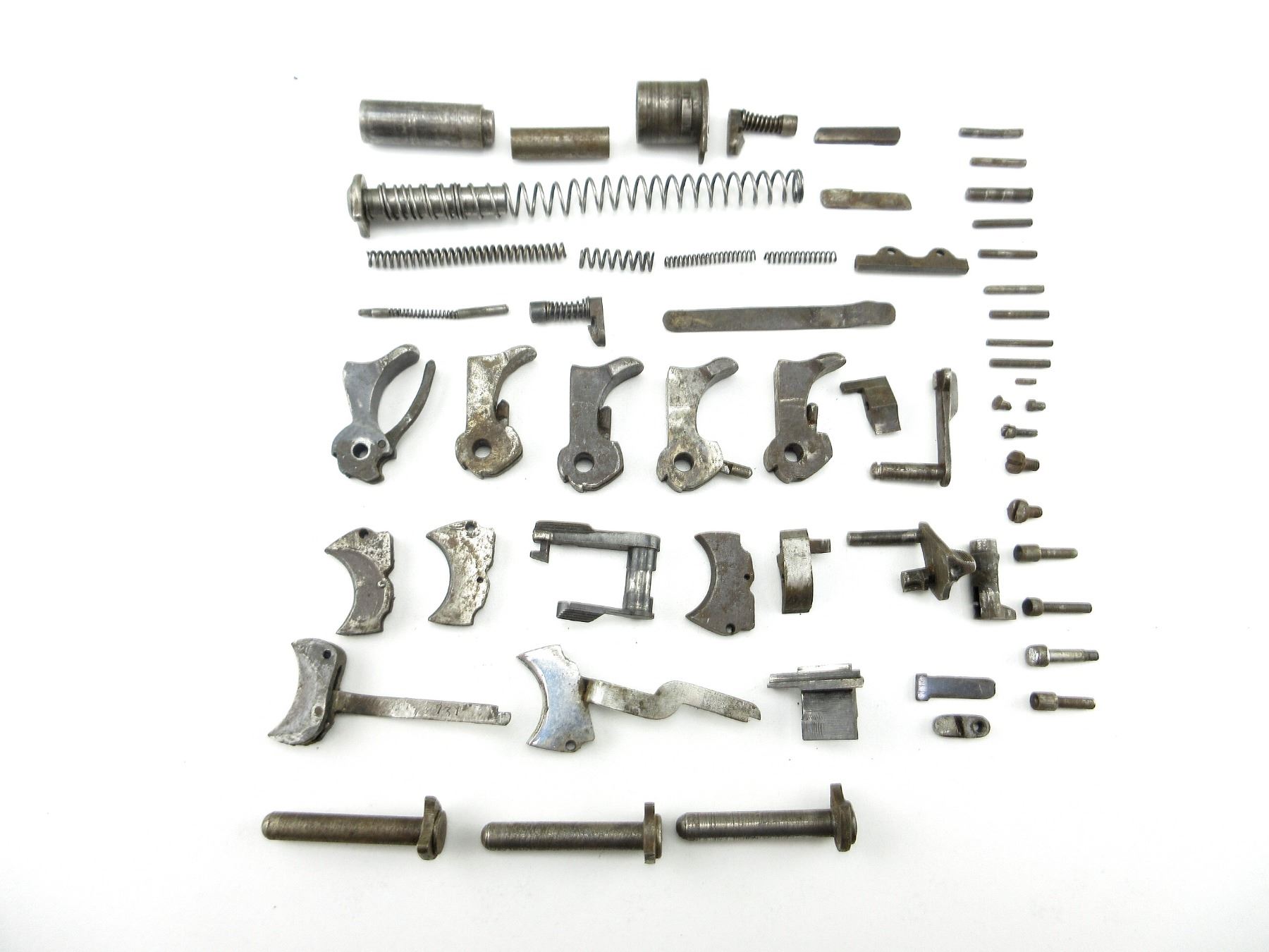 LOT INCLUDES; HAMMERS, TRIGGERS, SEAR, SAFETY, RECOIL SPRING GUIDES, SLIDE RELEASES, VARIOUS PIN / SPRINGS / SCREWS, ETC. MAY CONTAIN OTHER PARTS. MAY REQUIRE FITTING. SEE PHOTOS.