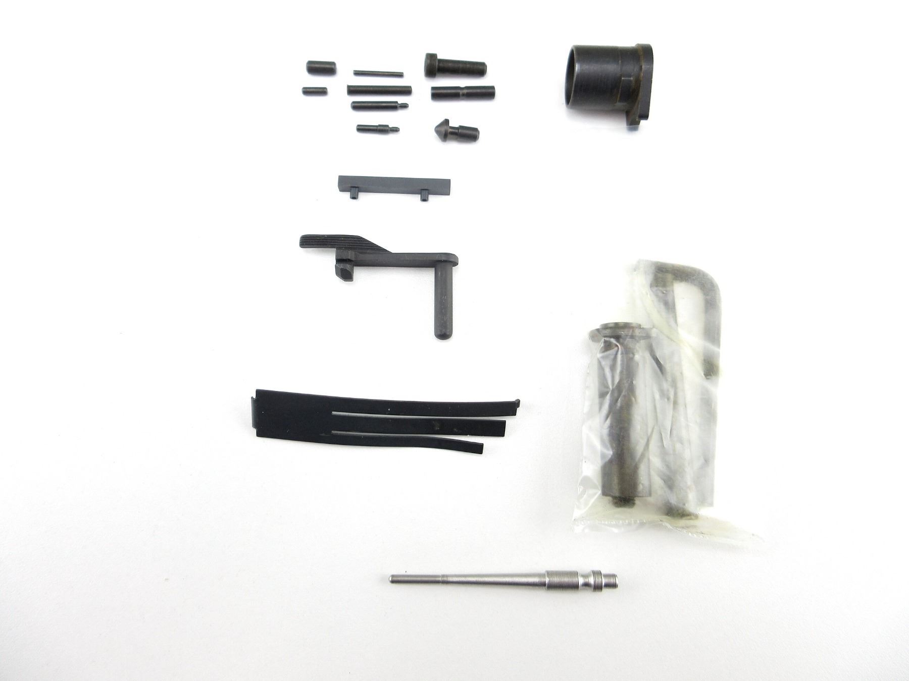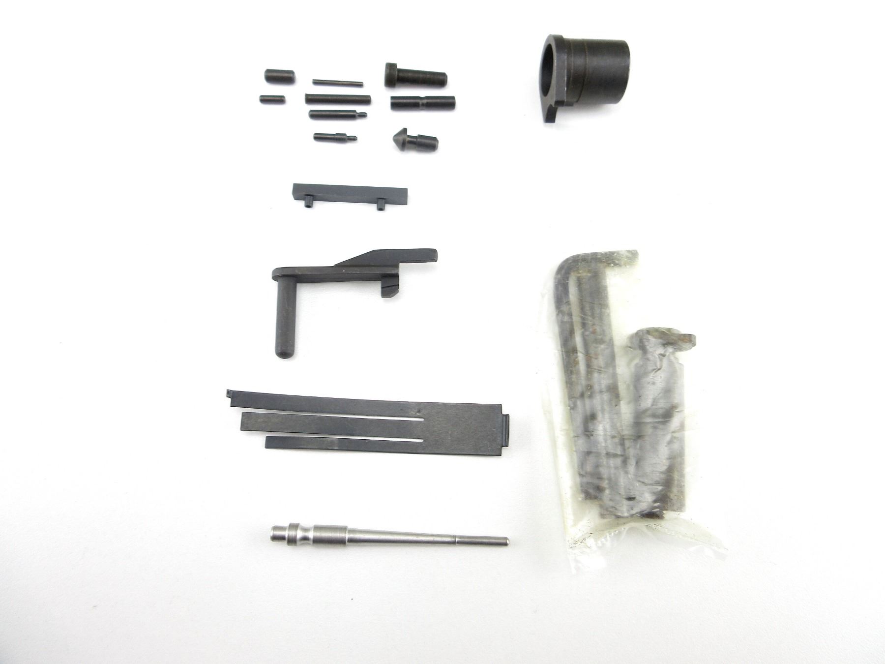 LOT INCLUDES; TARGET BUSHING, EXTENDED SLIDE RELEASE, SEAR SPRING, PLUNGER TUBE, FIRING PIN, CLARK SPRING GUIDE FOR 5" BARRELS, VARIOUS PINS, ETC. MAY REQUIRE FITTING. SEE PHOTOS.