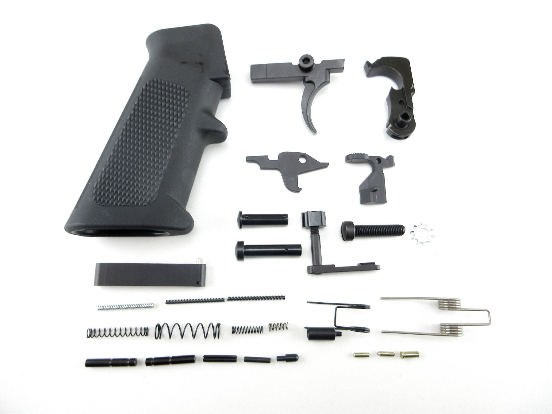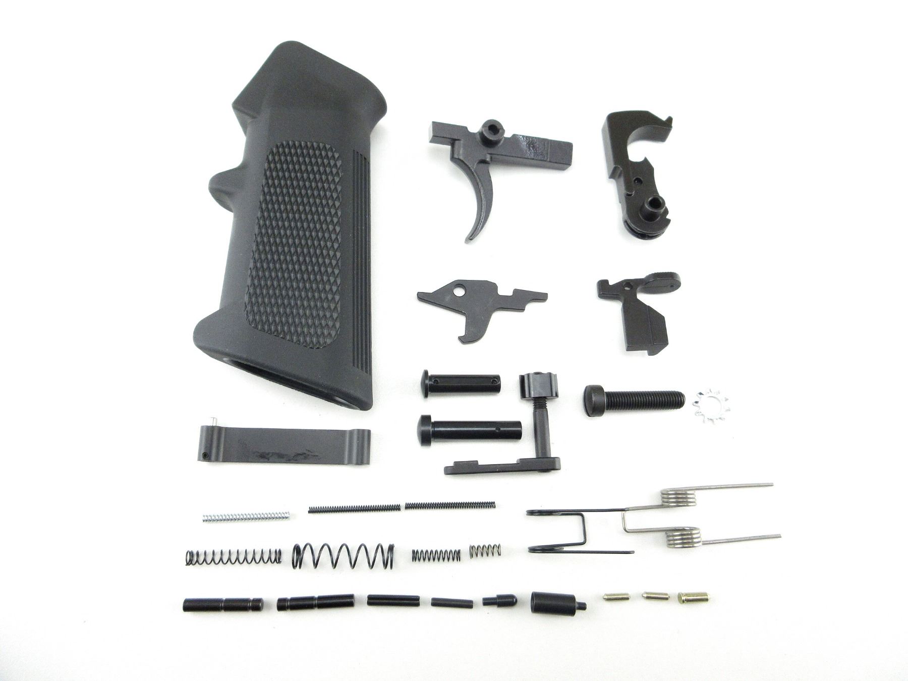 LOT INCLUDES; GRIP WITH SCREW, MAG CATCH, TAKE-DOWN PINS, BOLT RELEASE, HAMMER & TRIGGER, DISCONNECTOR, SPRING & PIN KITS, ETC. MAY REQUIRE FITTING. SEE PHOTOS.