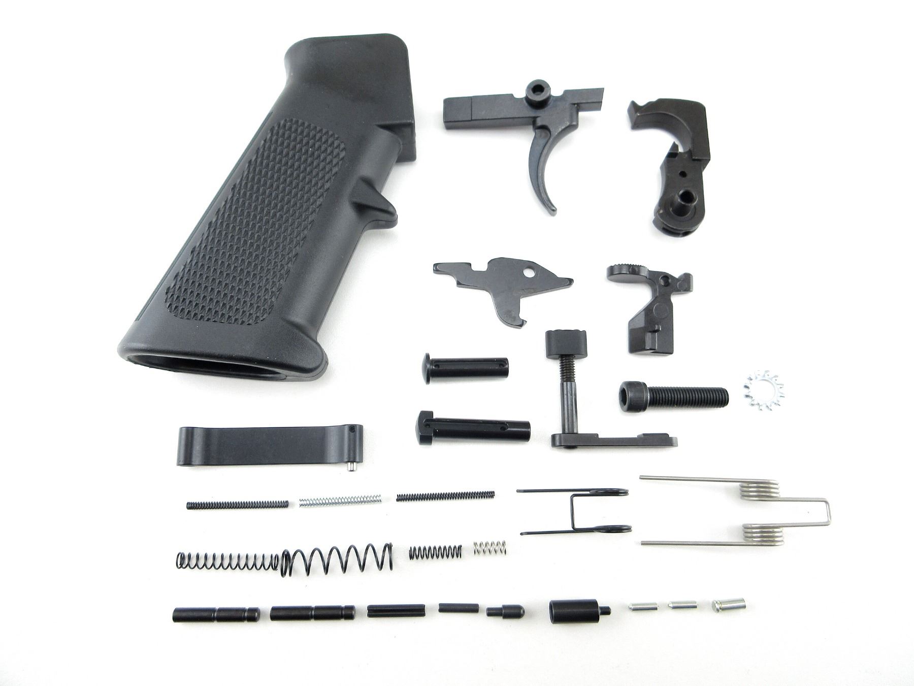 LOT INCLUDES; GRIP WITH SCREW, MAG CATCH, TAKE-DOWN PINS, BOLT RELEASE, HAMMER & TRIGGER, DISCONNECTOR, SPRING & PIN KITS, ETC. MAY REQUIRE FITTING. SEE PHOTOS.
