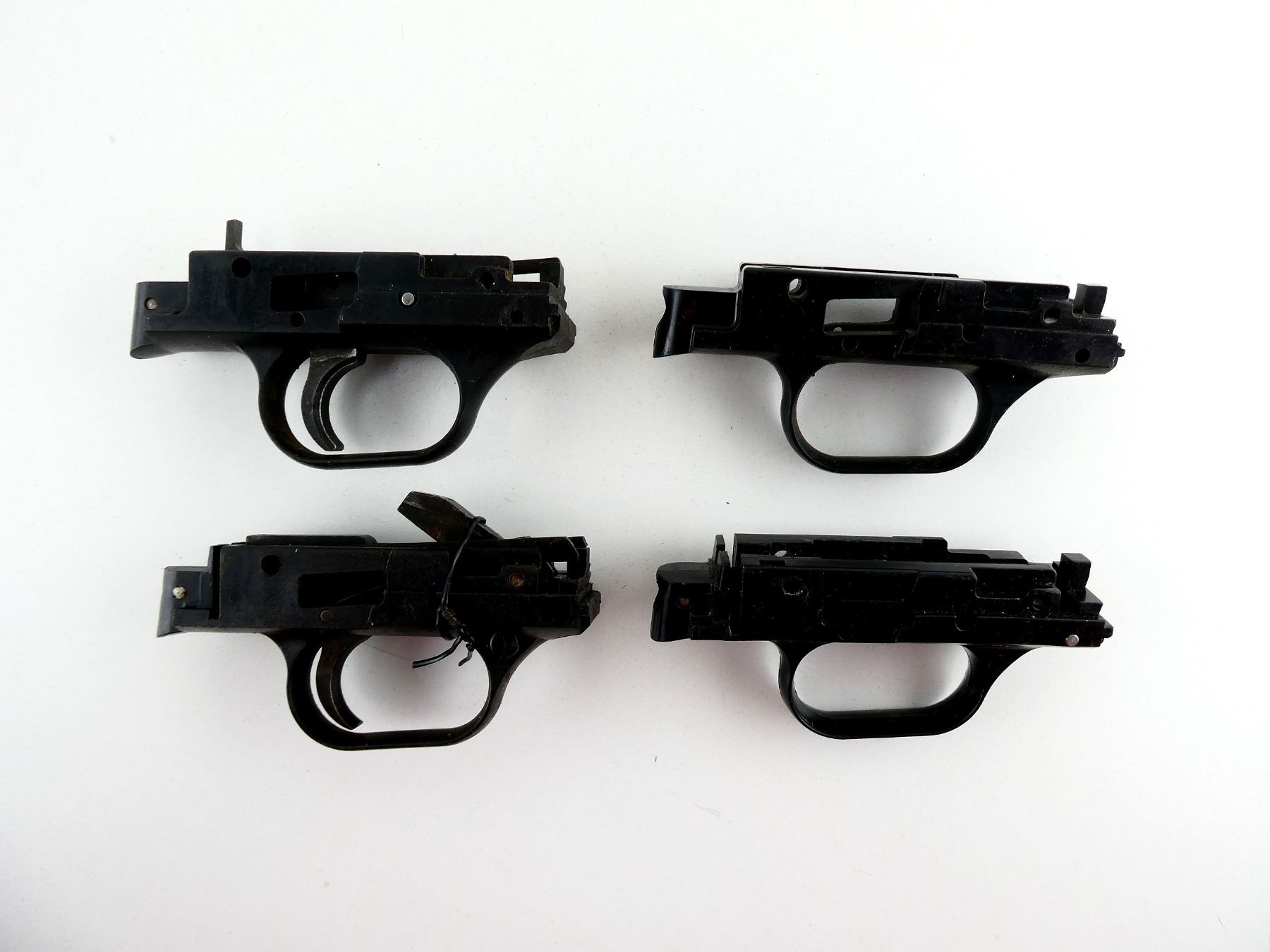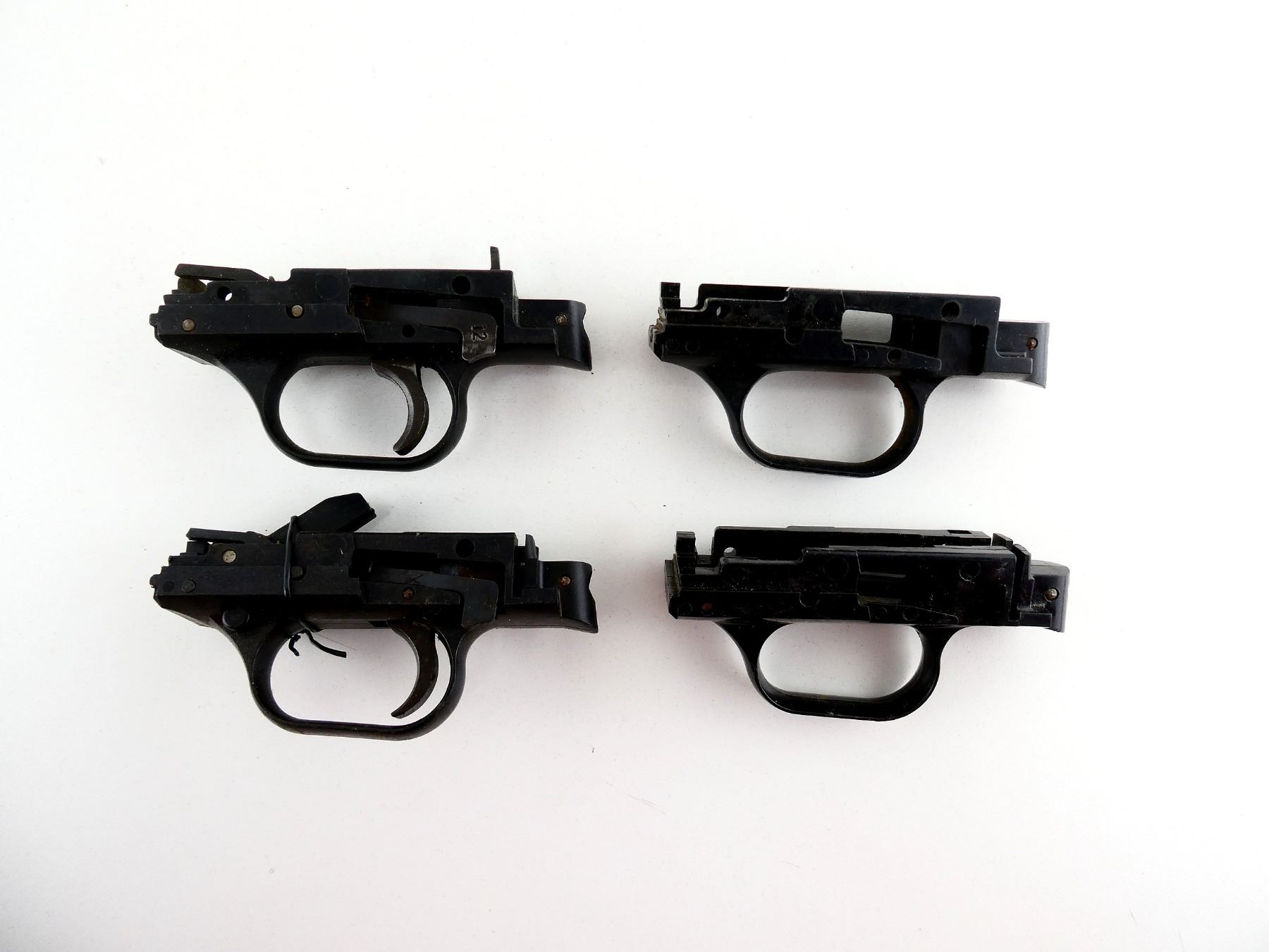 LOT INCLUDES; (4) TRIGGER MECH., ONE COMPLETE WITH CROSS BOLT SAFETY / ONE INCOMPLETE / TWO STRIPPED, BLACK POLYMER CONSTRUCTION. MAY REQUIRE FITTING. SEE PHOTOS.
