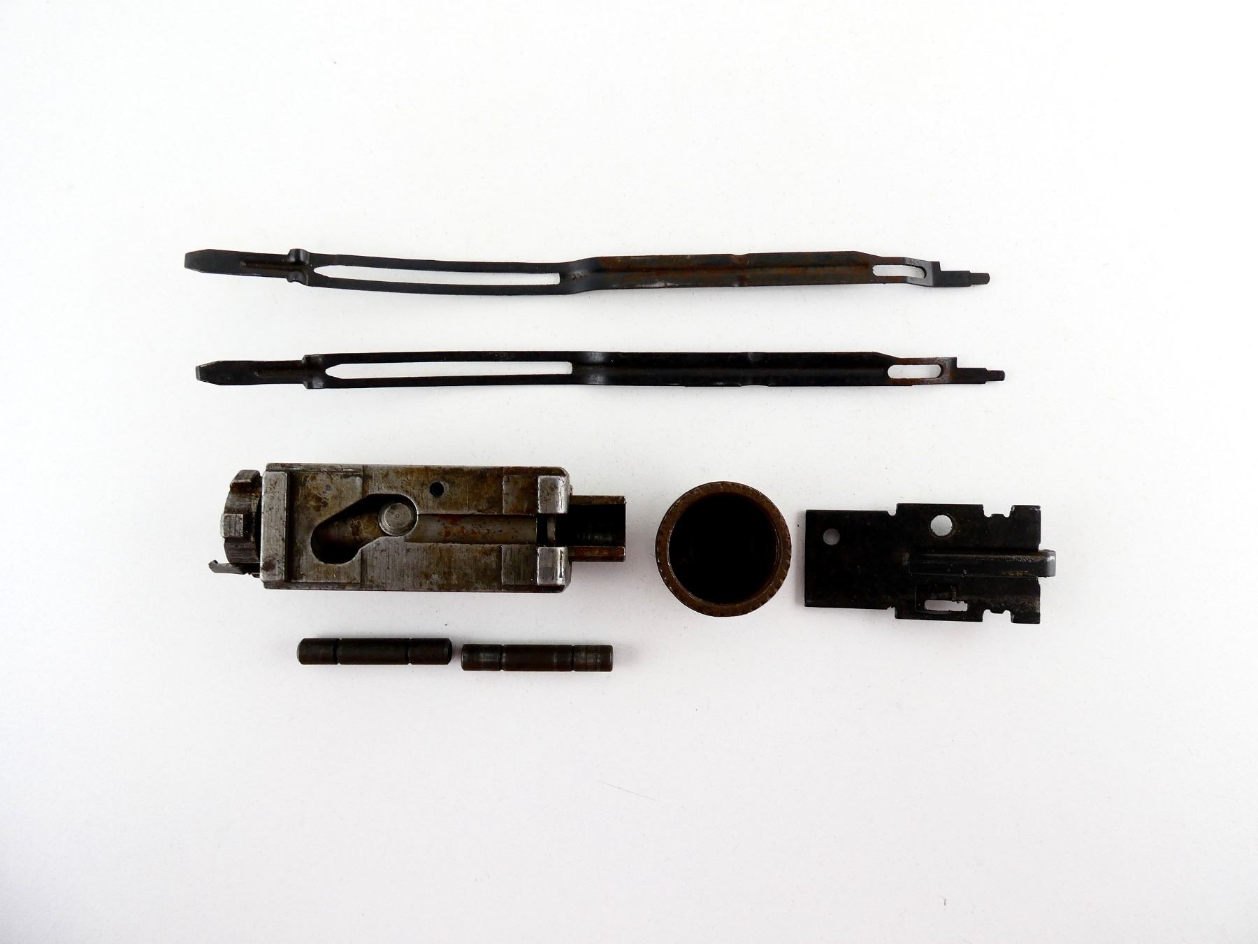 LOT INCLUDES; INCOMPLETE BOLT, MAG TUBE CAP, EJECTORS, TRIGGER MECH. PINS, ETC. MAY REQUIRE FITTING. SEE PHOTOS.