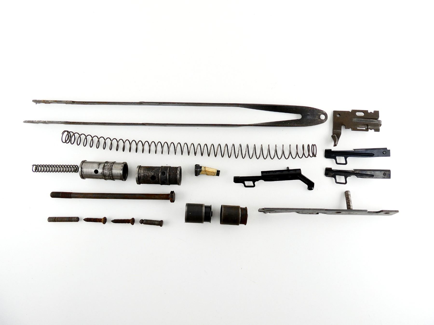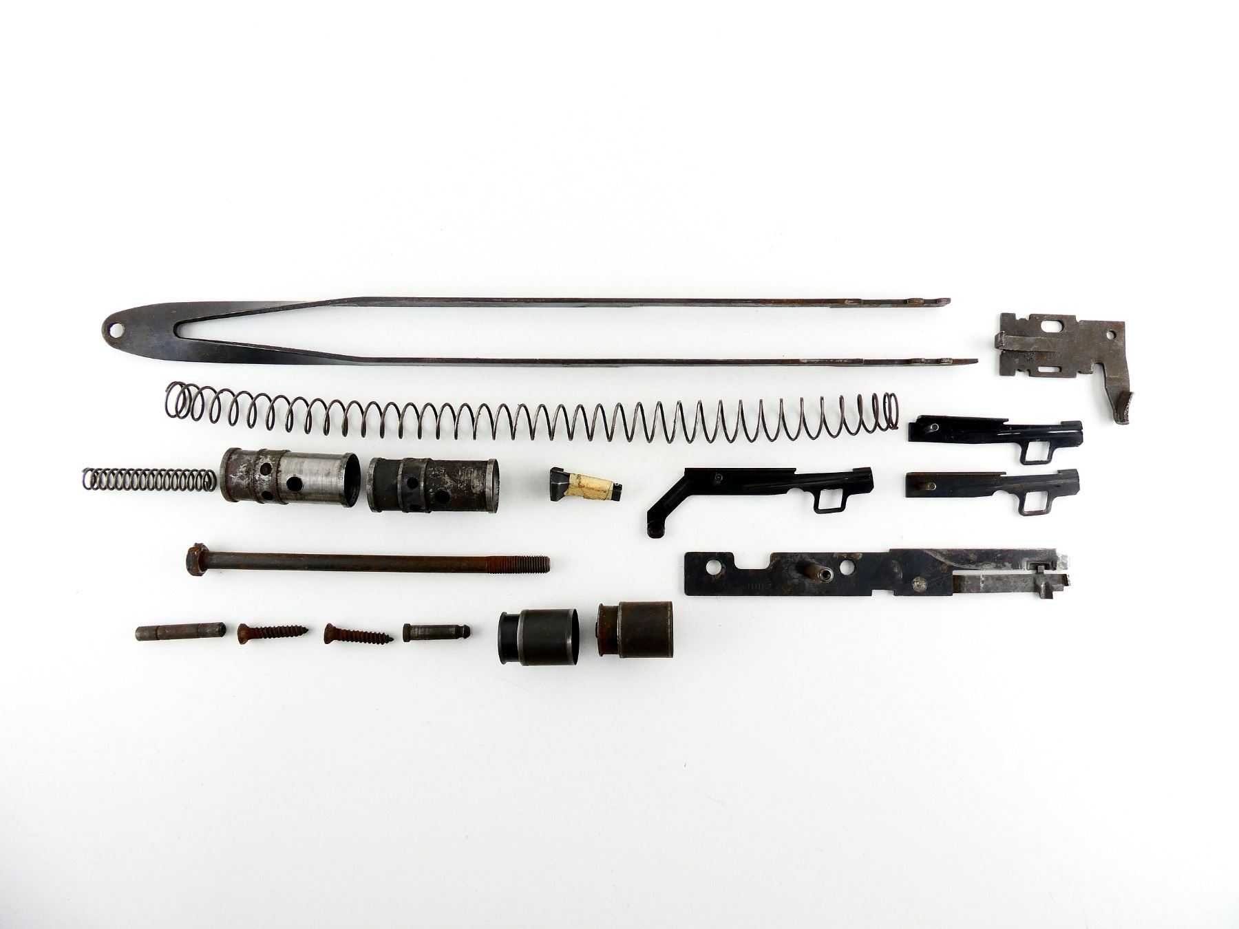 LOT INCLUDES; ACTION BAR, COCKING HANDLE, PISTONS WITH RETAINING PINS, BUTT PLATE SCREWS, MAG FOLLOWER, STOCK BOLT, ASSORTED TRIGGER PARTS, ETC. MAY REQUIRE FITTING. SEE PHOTOS.