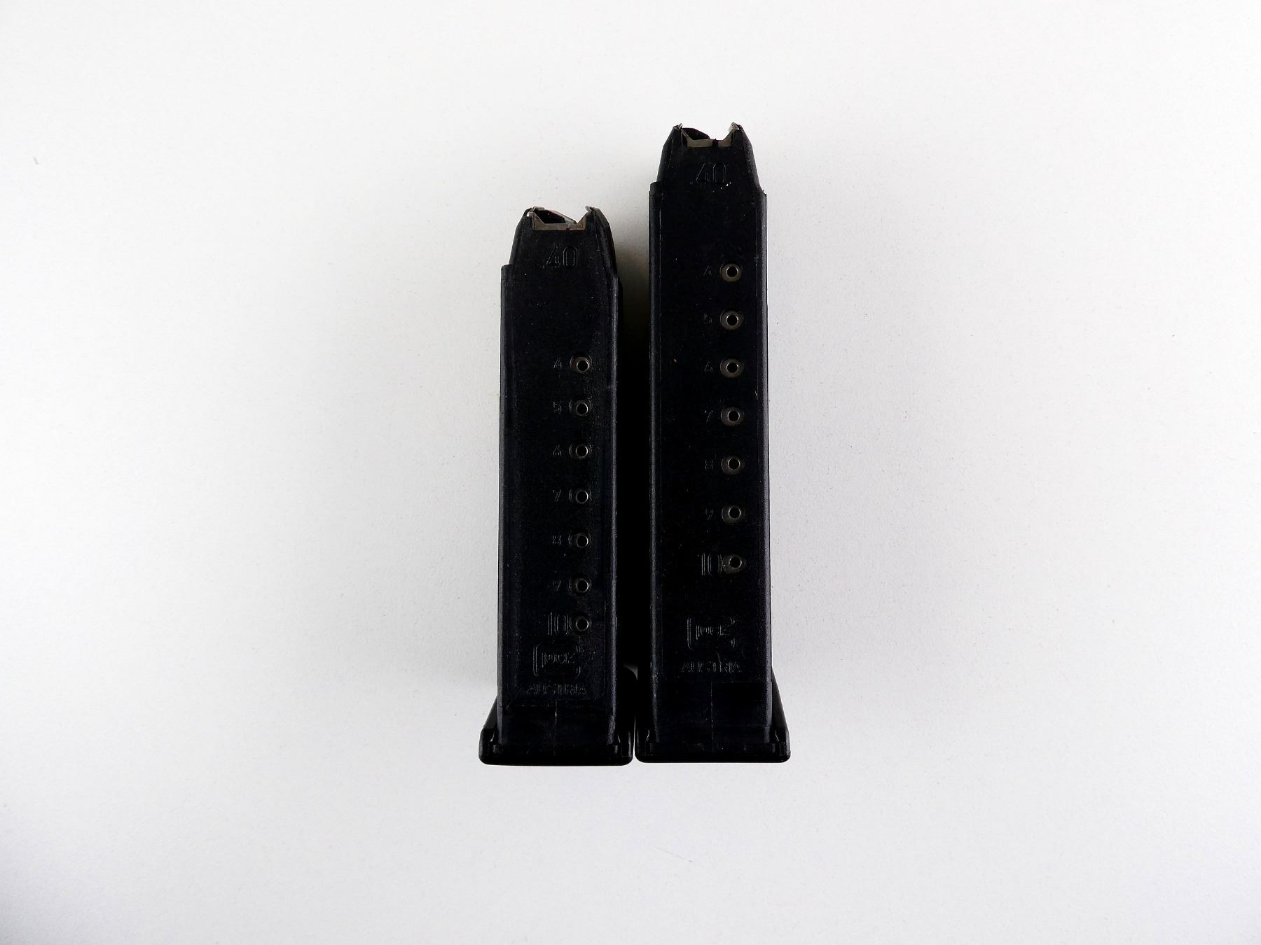 LOT INCLUDES; (2) .40 S&W MAGS, 10 RNDS (ONE STANDARD / ONE COMPACT), BLACK POLYMER CONSTRUCTION, MARKED: "40". SEE PHOTOS. PAL REQUIRED.