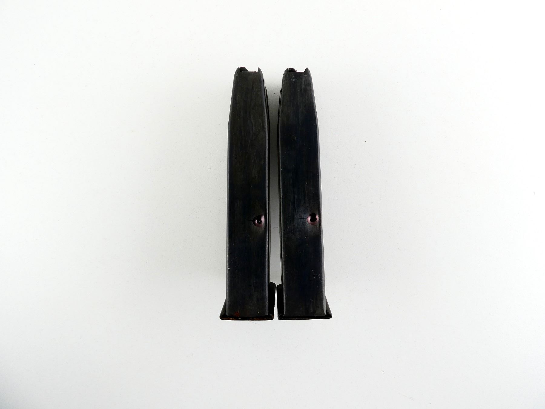 LOT INCLUDES; (2) 9MM LUGER, 10/15 ROUND PINNED MAGS, BLUED STEEL CONSTRUCTION, UNMARKED. SEE PHOTOS. PAL REQUIRED.