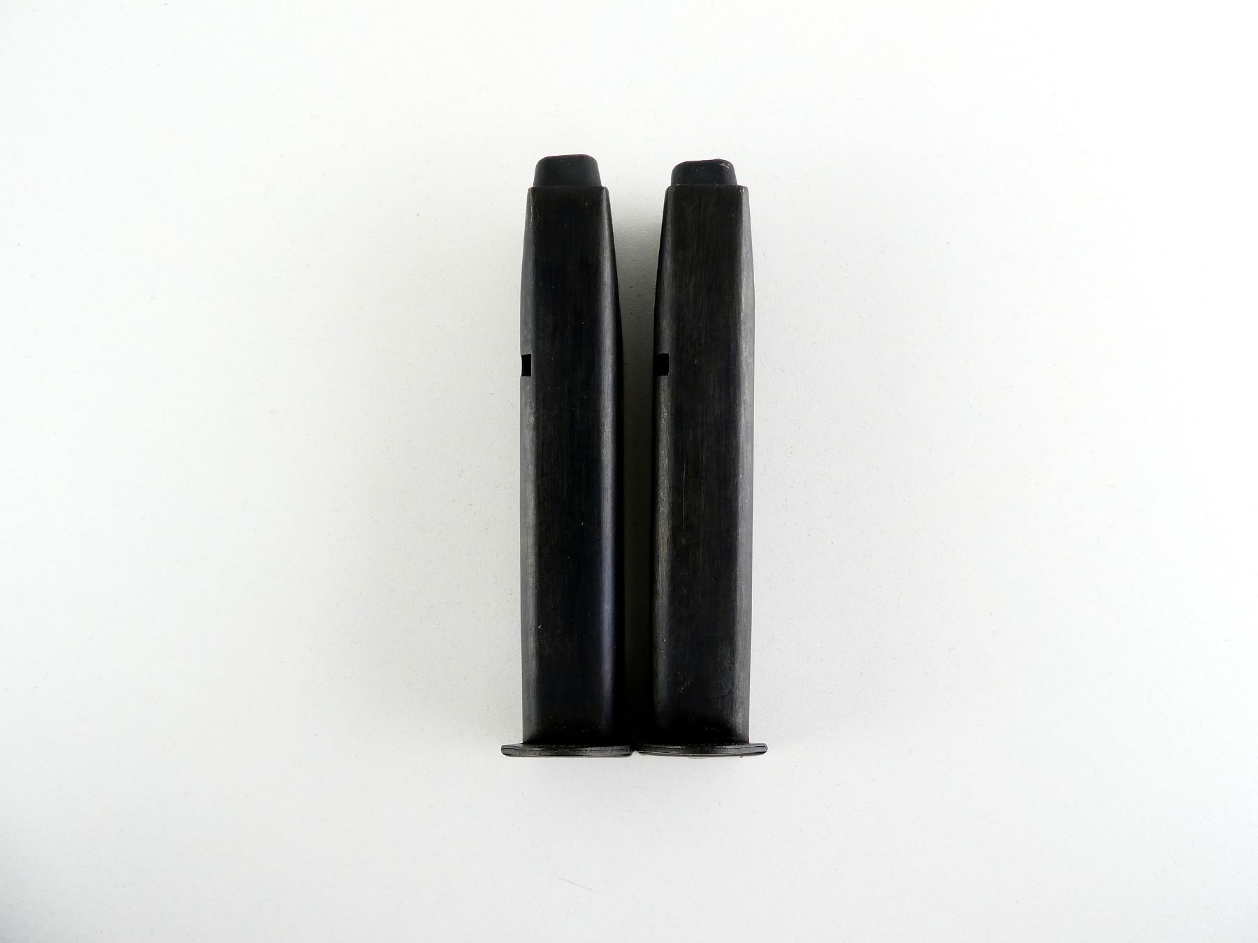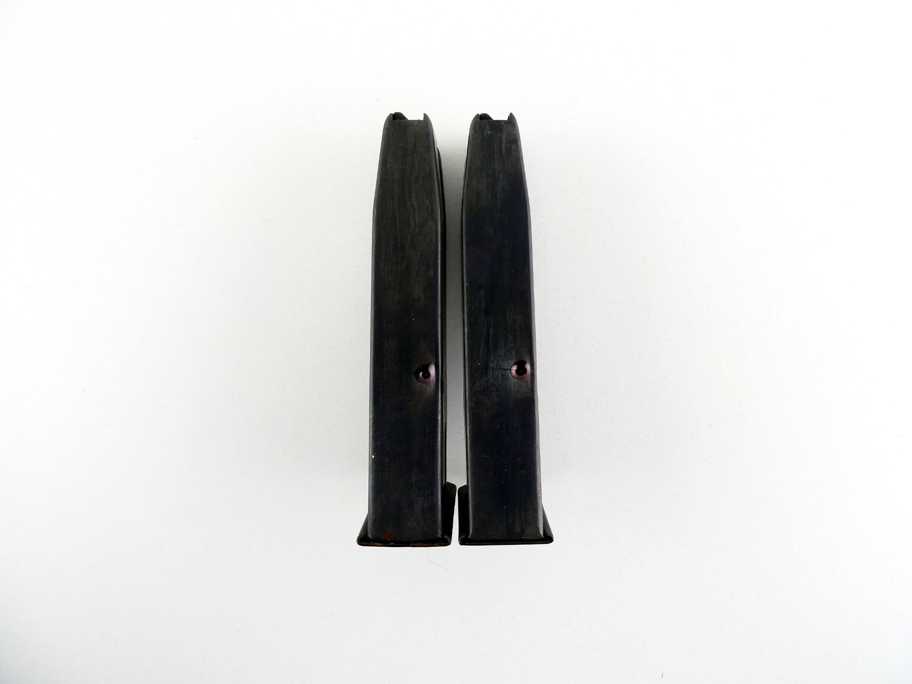 LOT INCLUDES; (2) 9MM LUGER, 10/15 ROUND PINNED MAGS, BLUED STEEL CONSTRUCTION, UNMARKED. SEE PHOTOS. PAL REQUIRED.