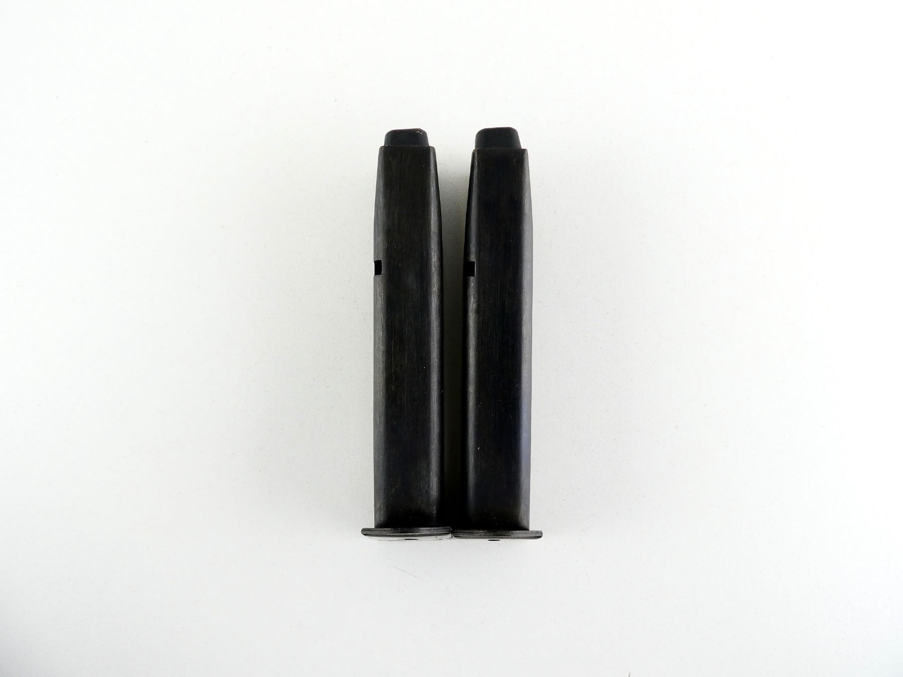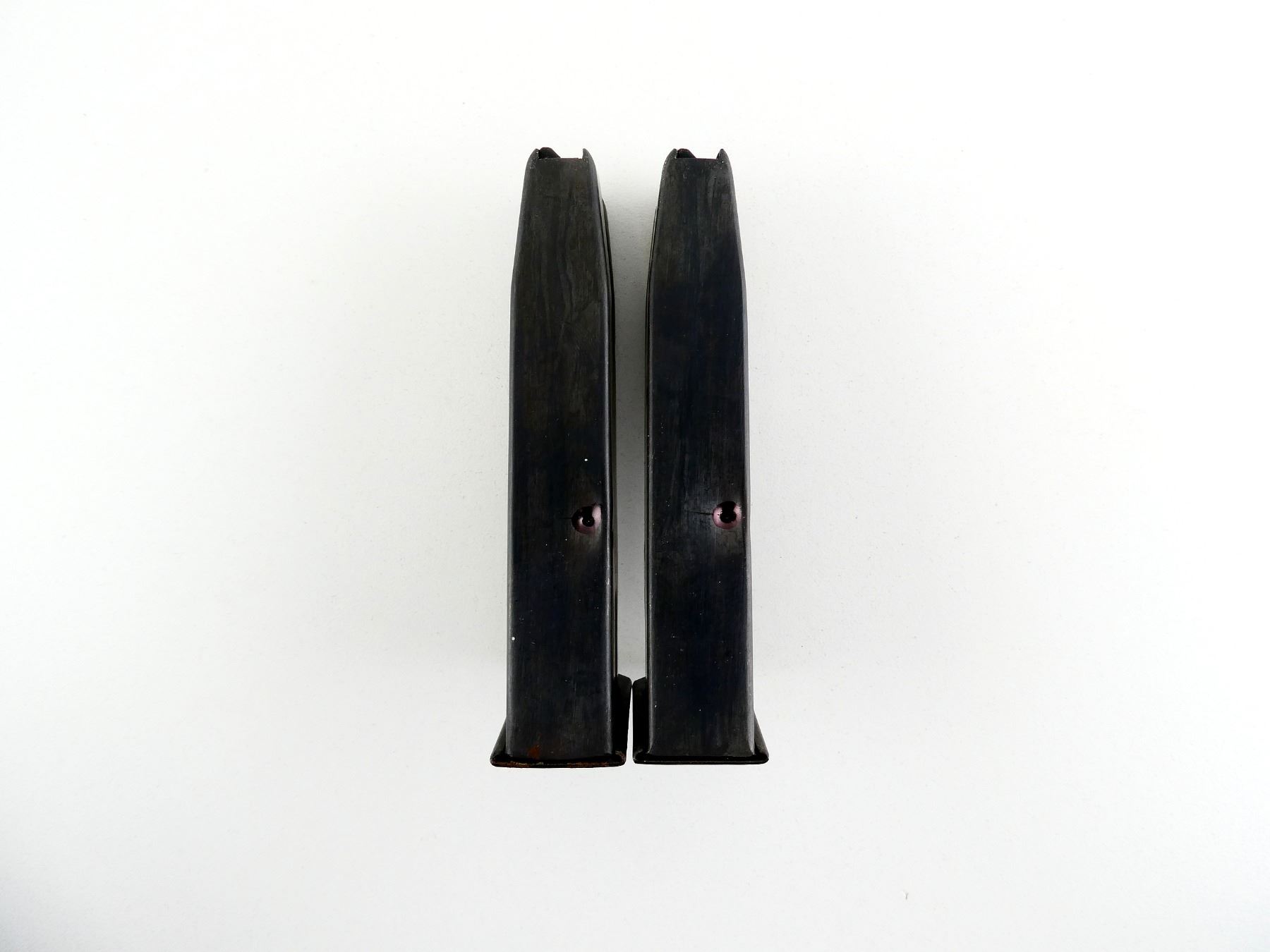 LOT INCLUDES; (2) 9MM LUGER, 10/15 ROUND PINNED MAGS, BLUED STEEL CONSTRUCTION, UNMARKED. SEE PHOTOS. PAL REQUIRED.