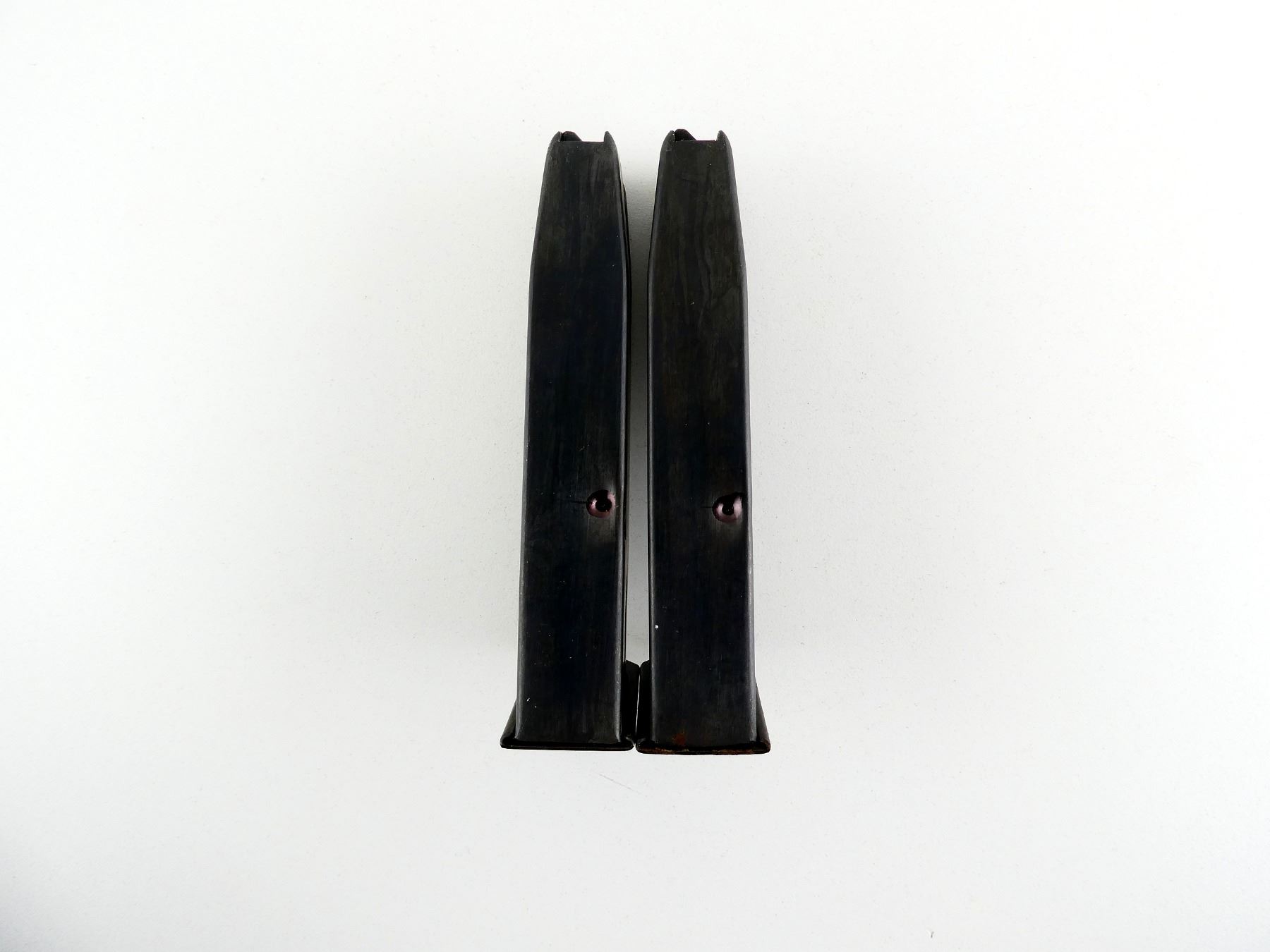 LOT INCLUDES; (2) 9MM LUGER, 10/15 ROUND PINNED MAGS, BLUED STEEL CONSTRUCTION, UNMARKED. SEE PHOTOS. PAL REQUIRED.