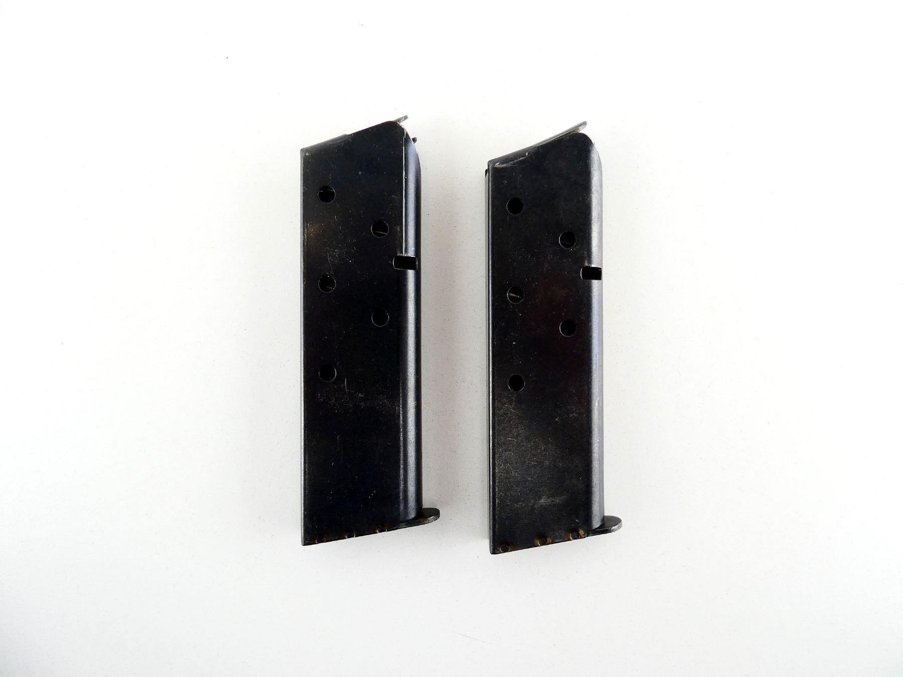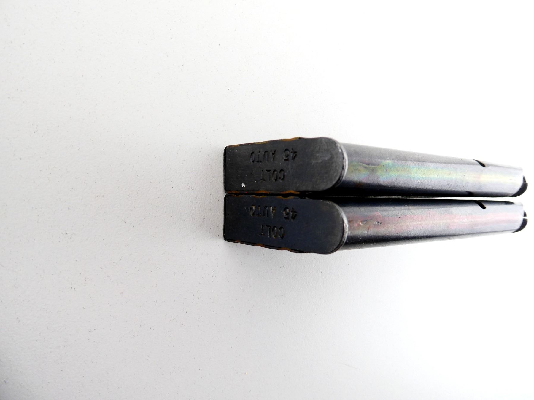 LOT INCLUDES; (2) 1911 .45 ACP MAGS, 7 RNDS, BLUED STEEL CONSTRUCTION, BASE MARKED: "COLT, 45 AUTO". SEE PHOTOS. PAL REQUIRED.