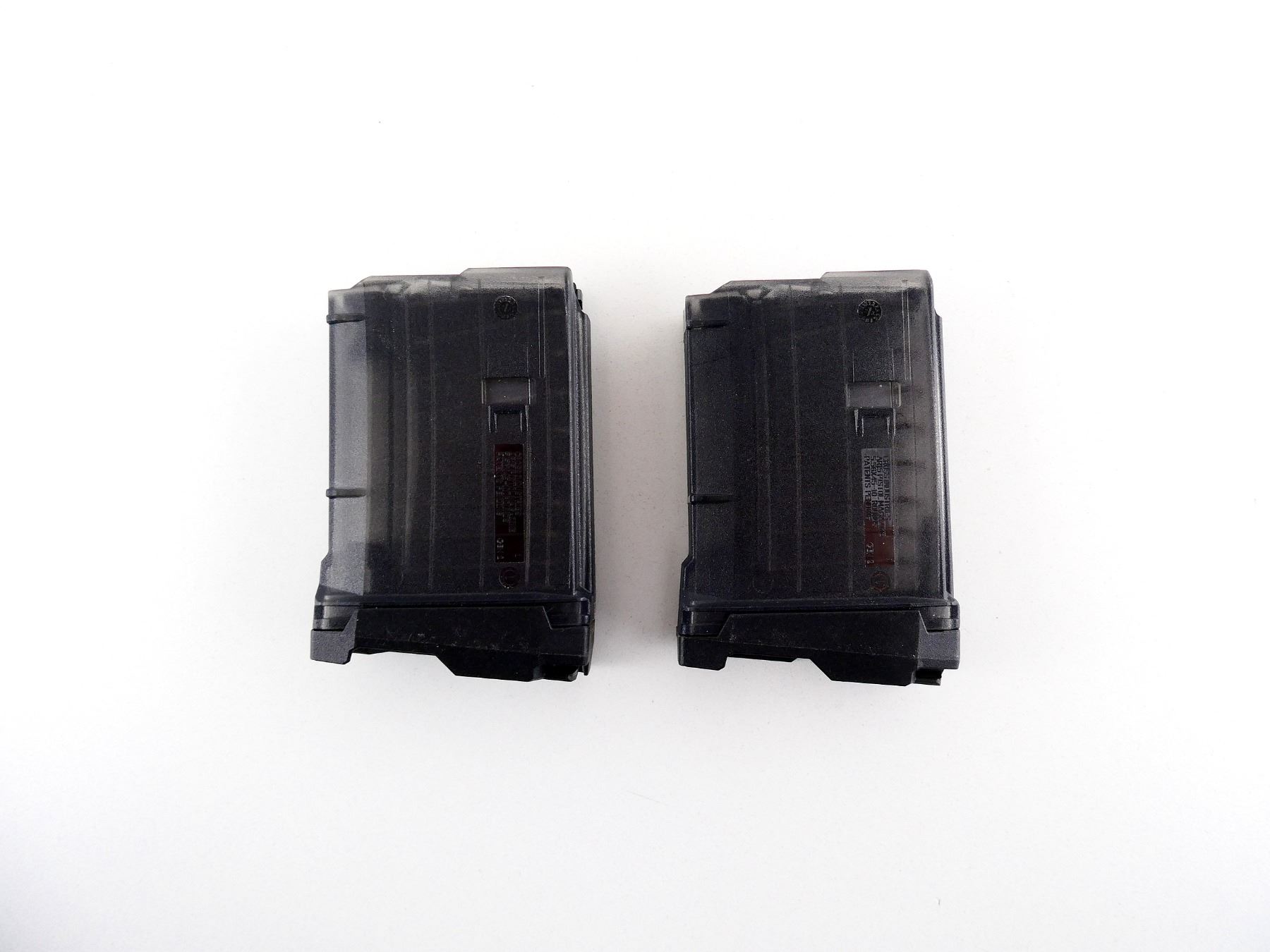LOT INCLUDES; (2) 5.56MM / .223 REM MAGS, 10 RNDS, SMOKE GREY POLYMER CONSTRUCTION, MARKED: "CROSS INDUSTRIES, AR-15 PISTOL MAGAZINE, 5.56X45 - 10 ROUNDS", ETC. SEE PHOTOS. PAL REQUIRED.