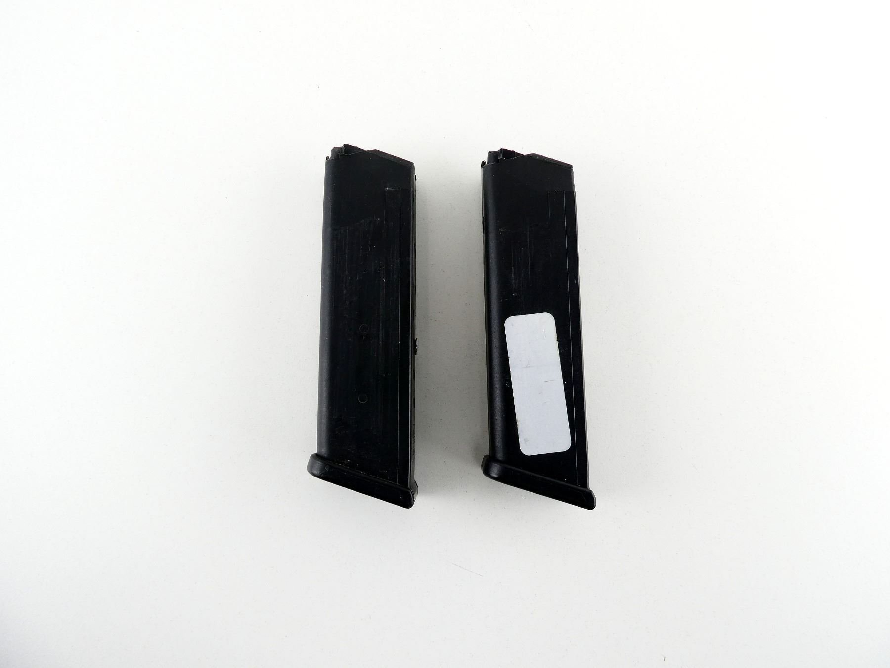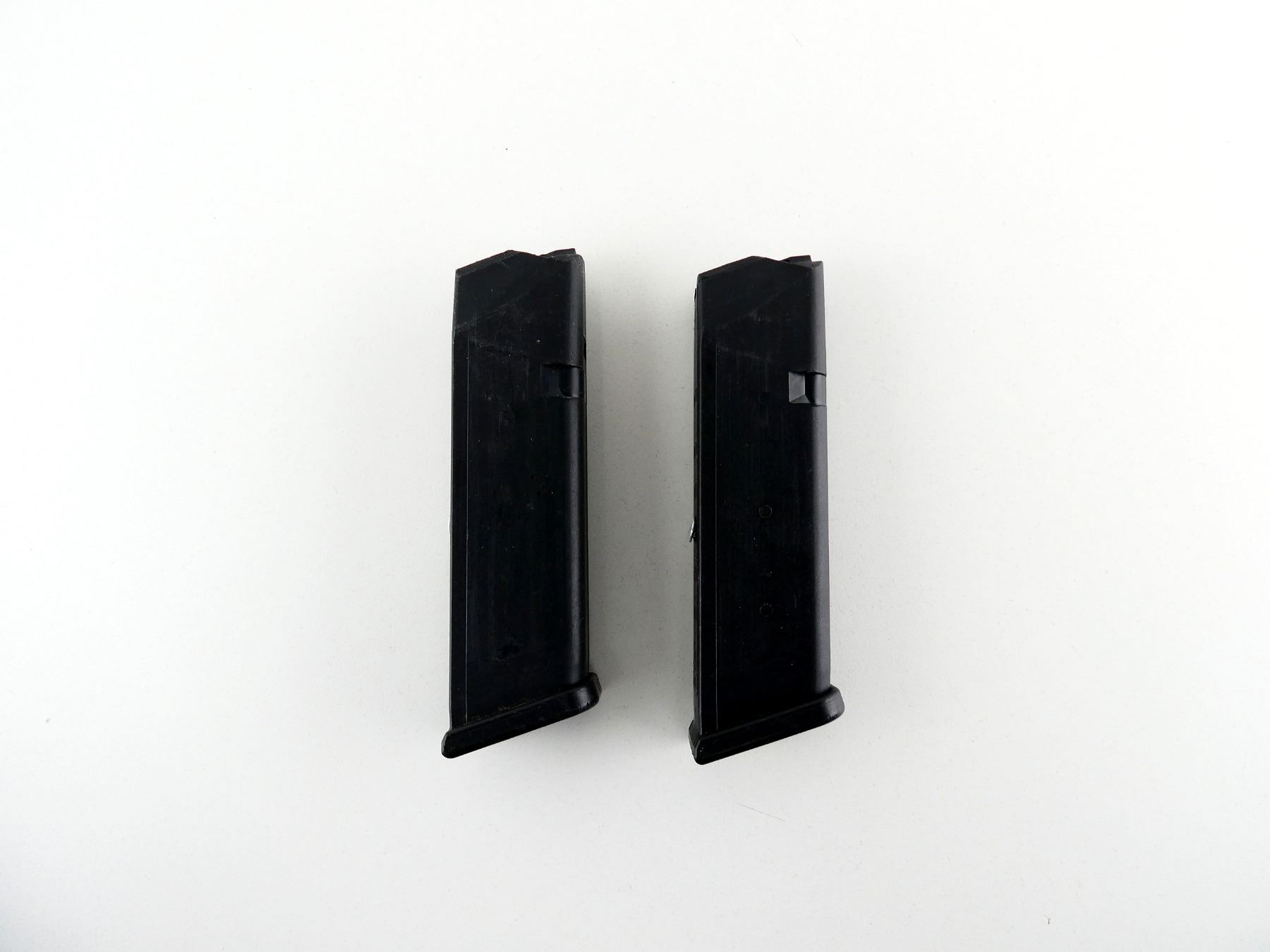 LOT INCLUDES; (2) .40 S&W, 10/15 ROUND PINNED MAGS, BLACK POLYMER CONSTRUCTION, MARKED: "GLOCK 2", ".40", ETC. SEE PHOTOS. PAL REQUIRED.